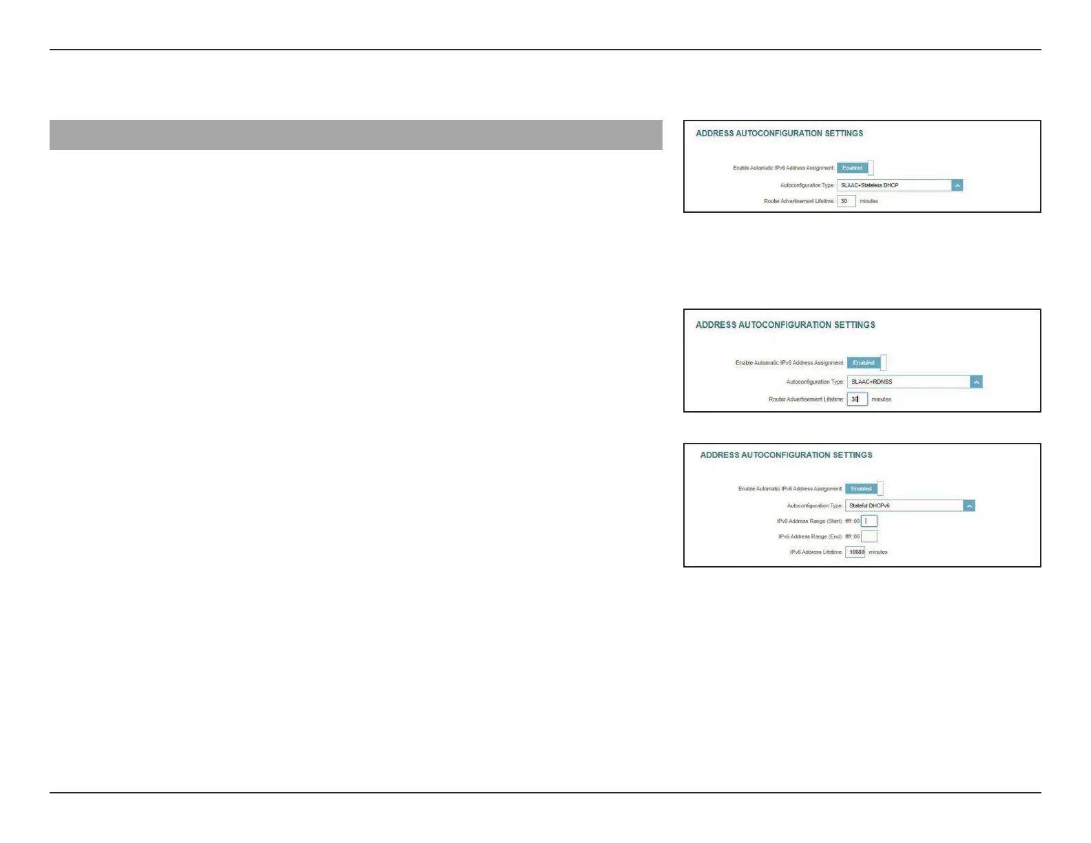 SLAAC+RDNSS or SLAAC+Stateless DHCP as the Autoconguration Type: