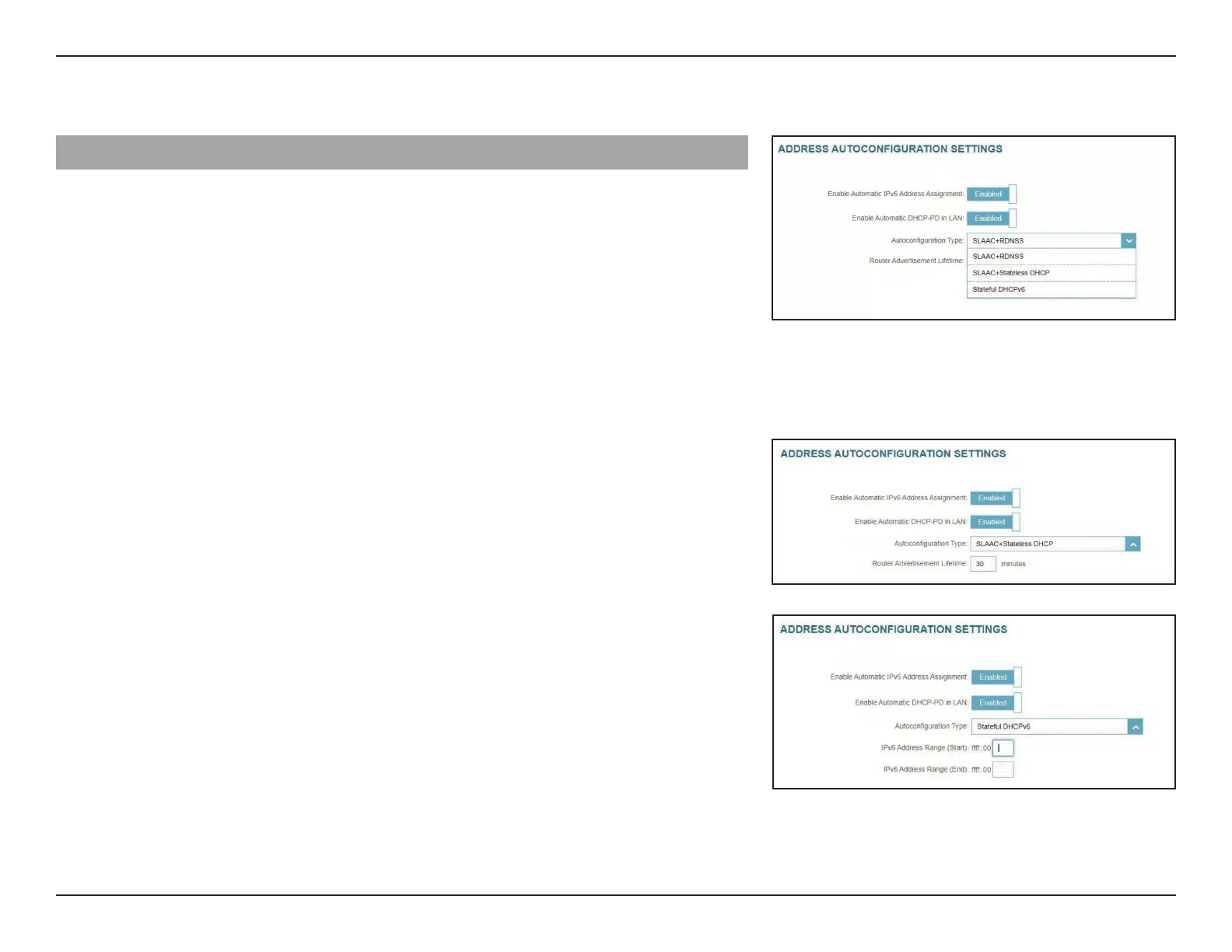 SLAAC+RDNSS or SLAAC+Stateless DHCP as the Autoconguration Type: