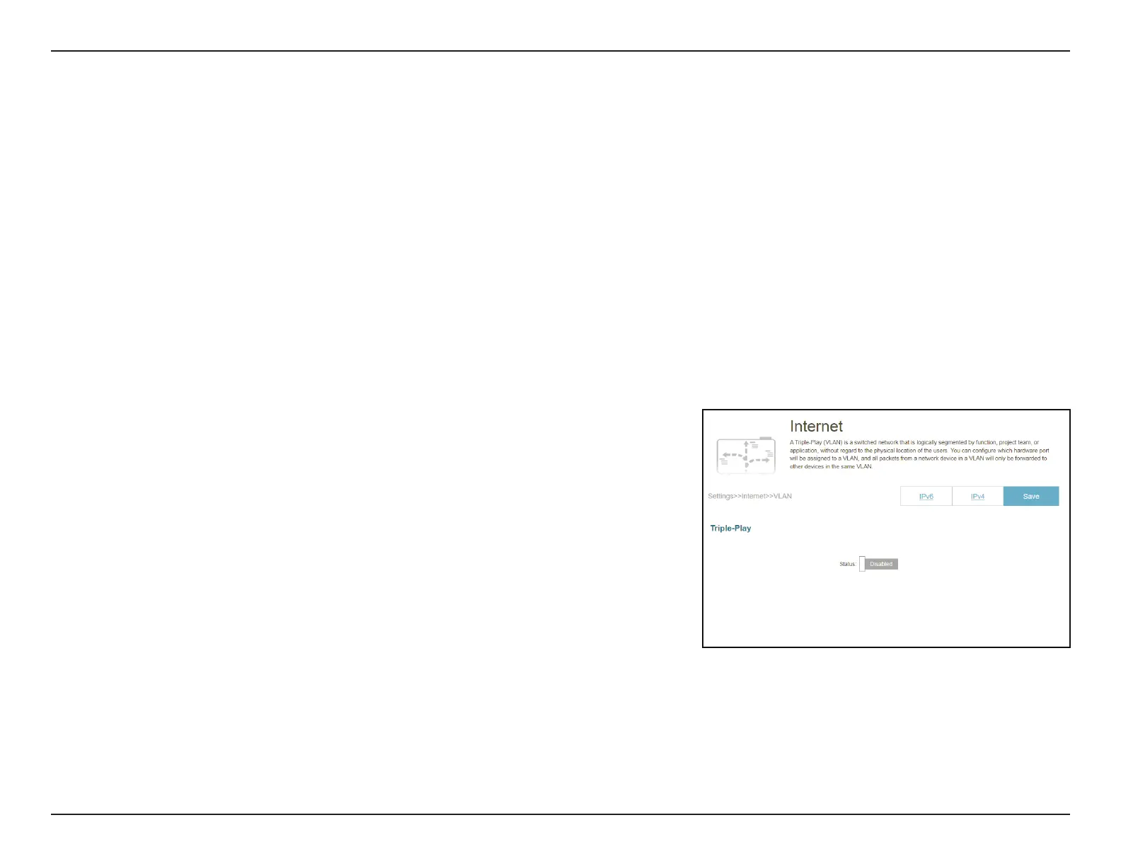 Status: Displays the current ULA prex. lick to enable or disable the Triple-Play VLAN