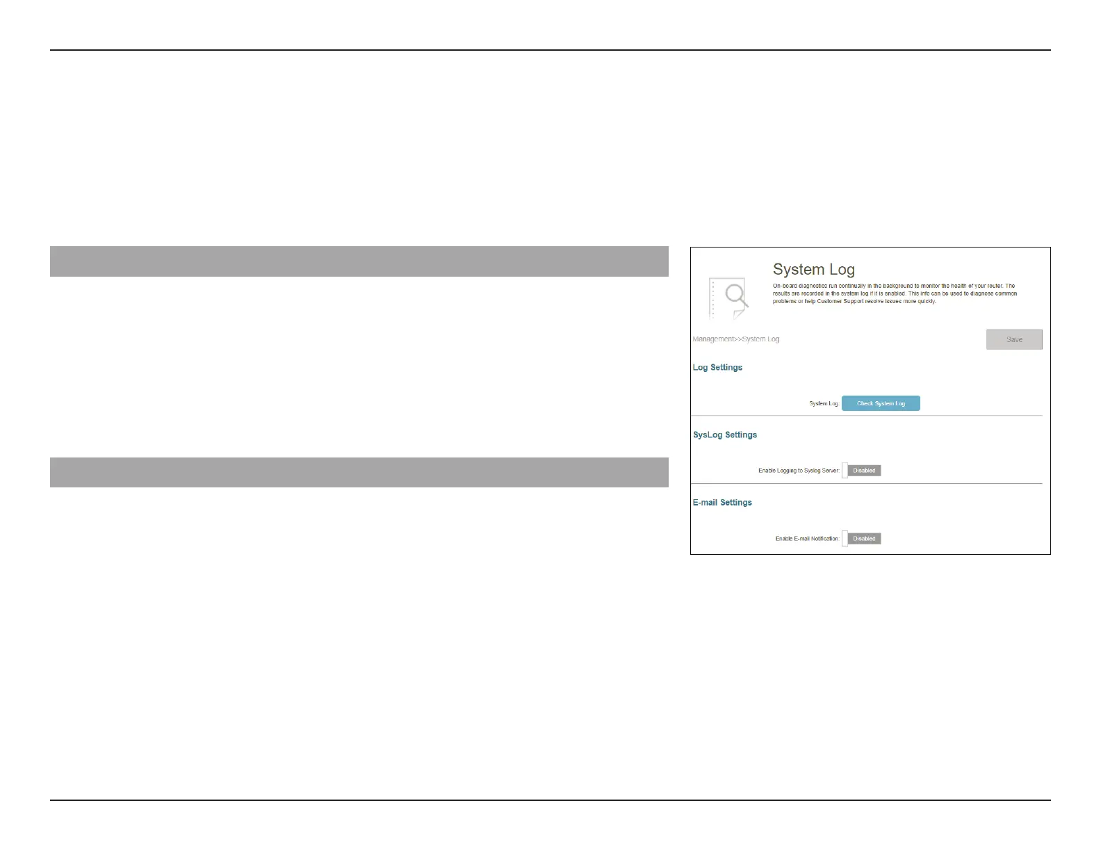 Go to Management > System Log. The router keeps a running log of events. This log can be sent to a Syslog server or to