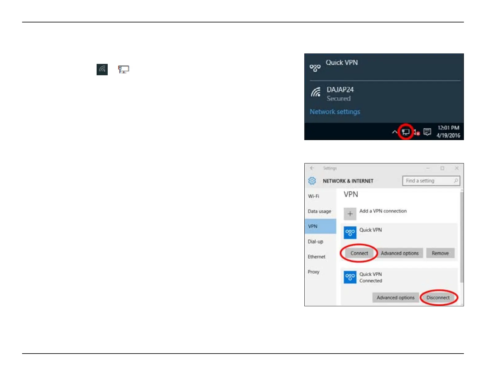 To connect to or disconnect from your Quick VPN server, click on the Network