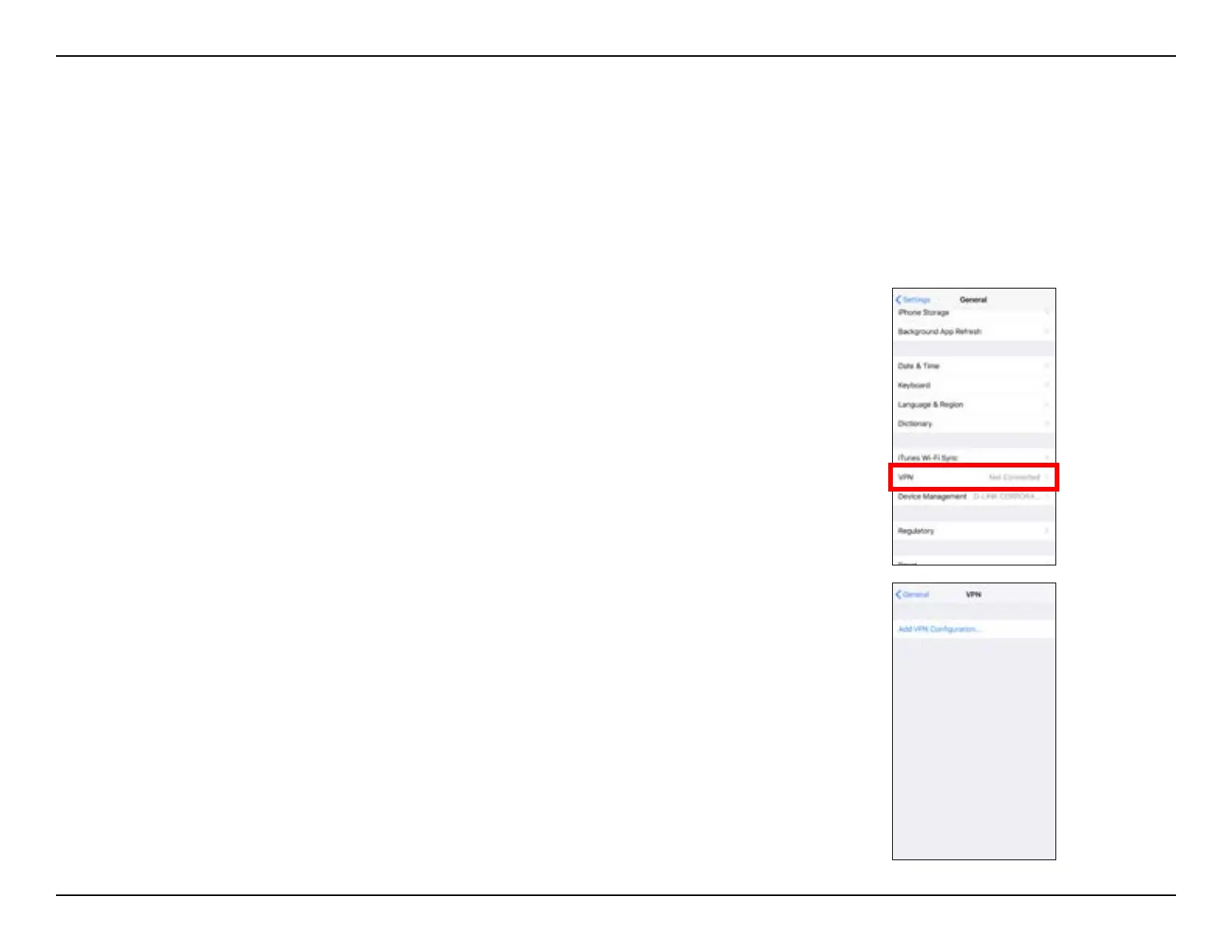 This section provides Quick VPN setup instructions for iOS devices. Refer to Quick VPN on page 68 for your router setup