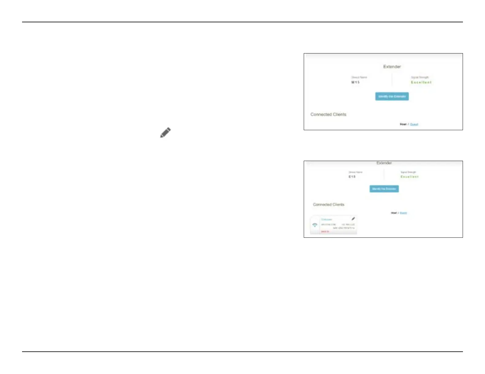 On this page you can see all the clients currently connected to the extender