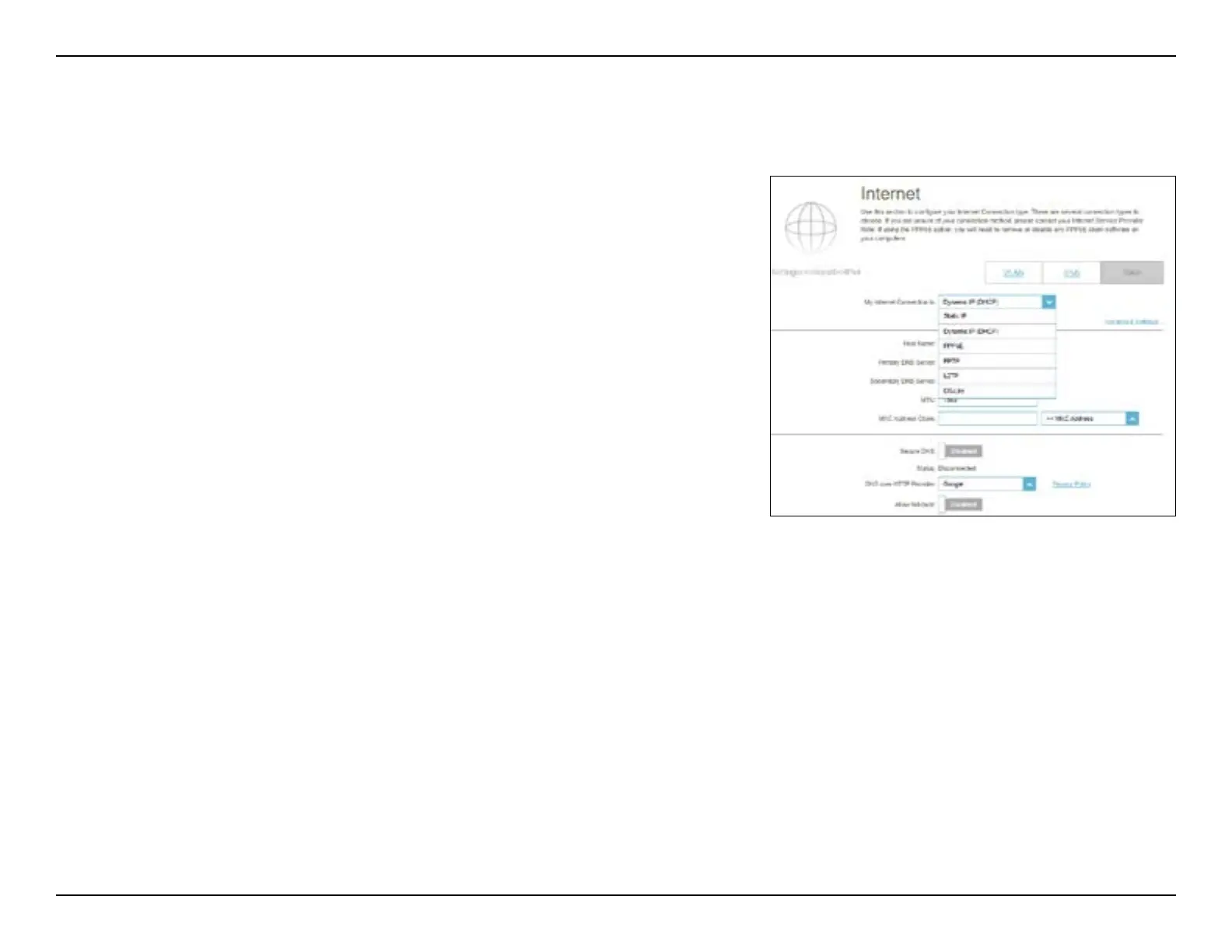 Choose your Internet connection type from the drop-down menu.
