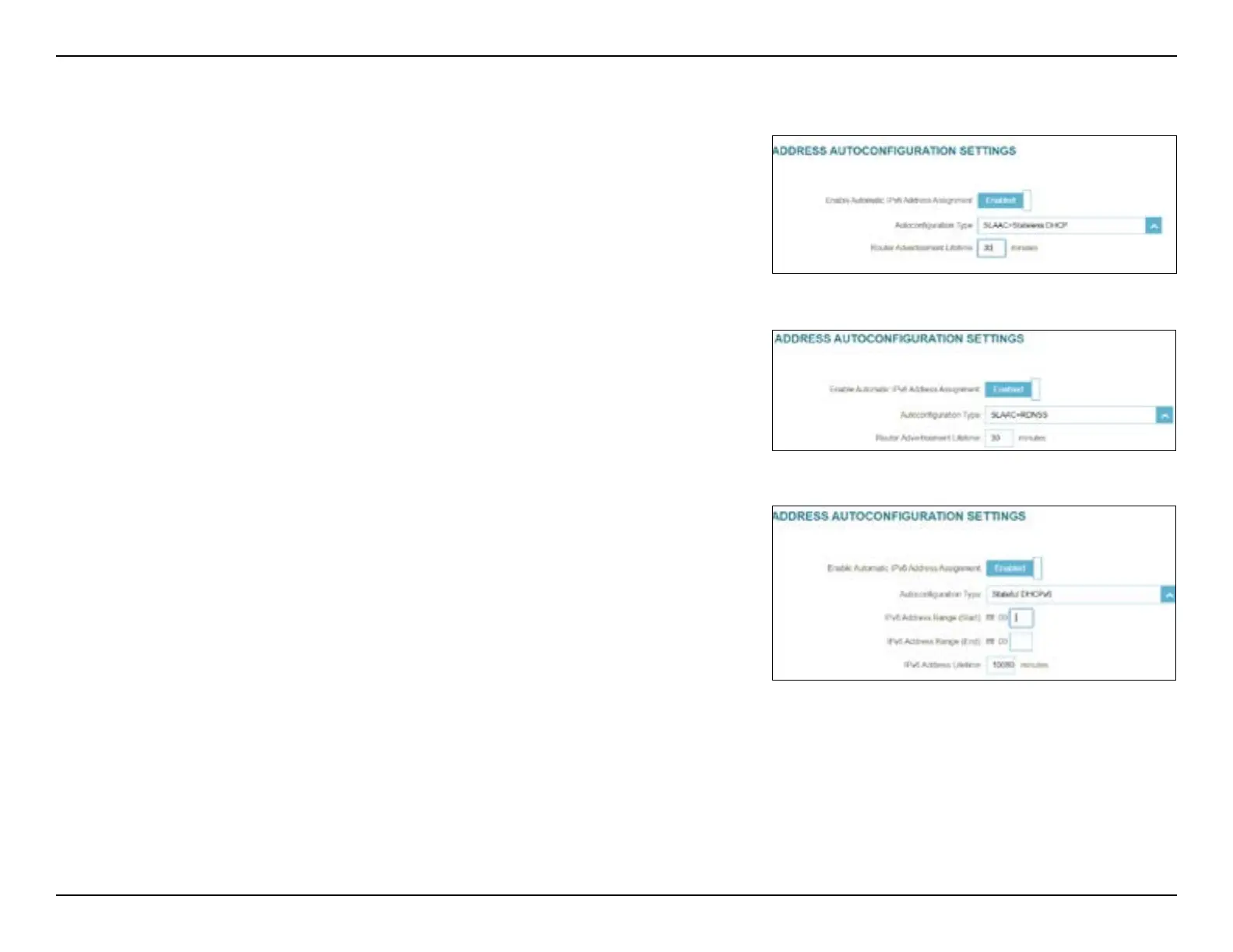 If you select SLAAC+RDNSS or SLAAC+Stateless DHCP as the Autoconguration Type: