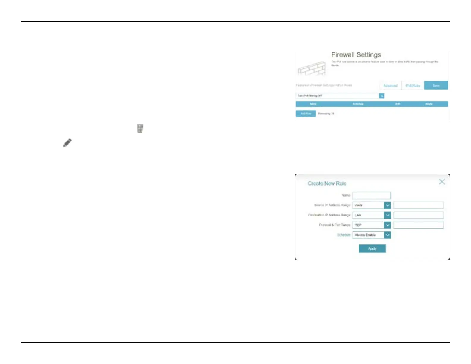 To congure the Firewall Advanced settings, click the Advanced link. Refer