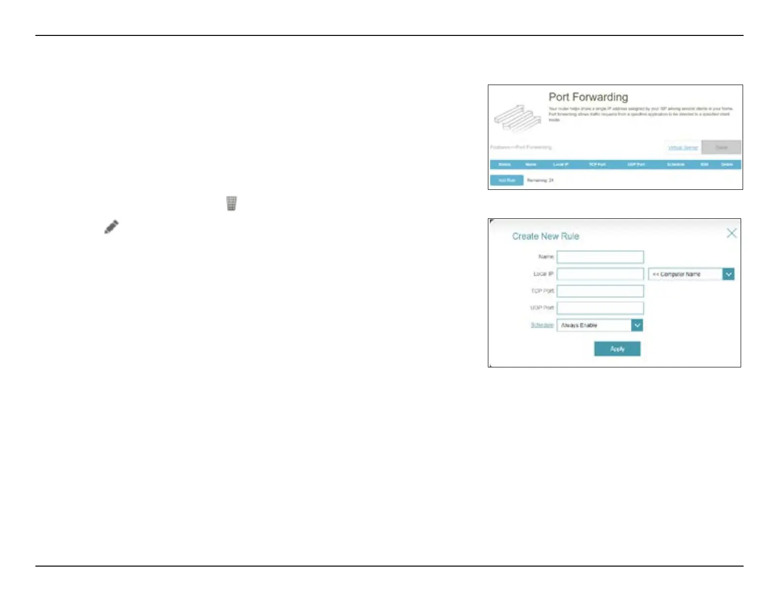 UDP Port Enter the UDP ports that you want to forward. You can enter a single
