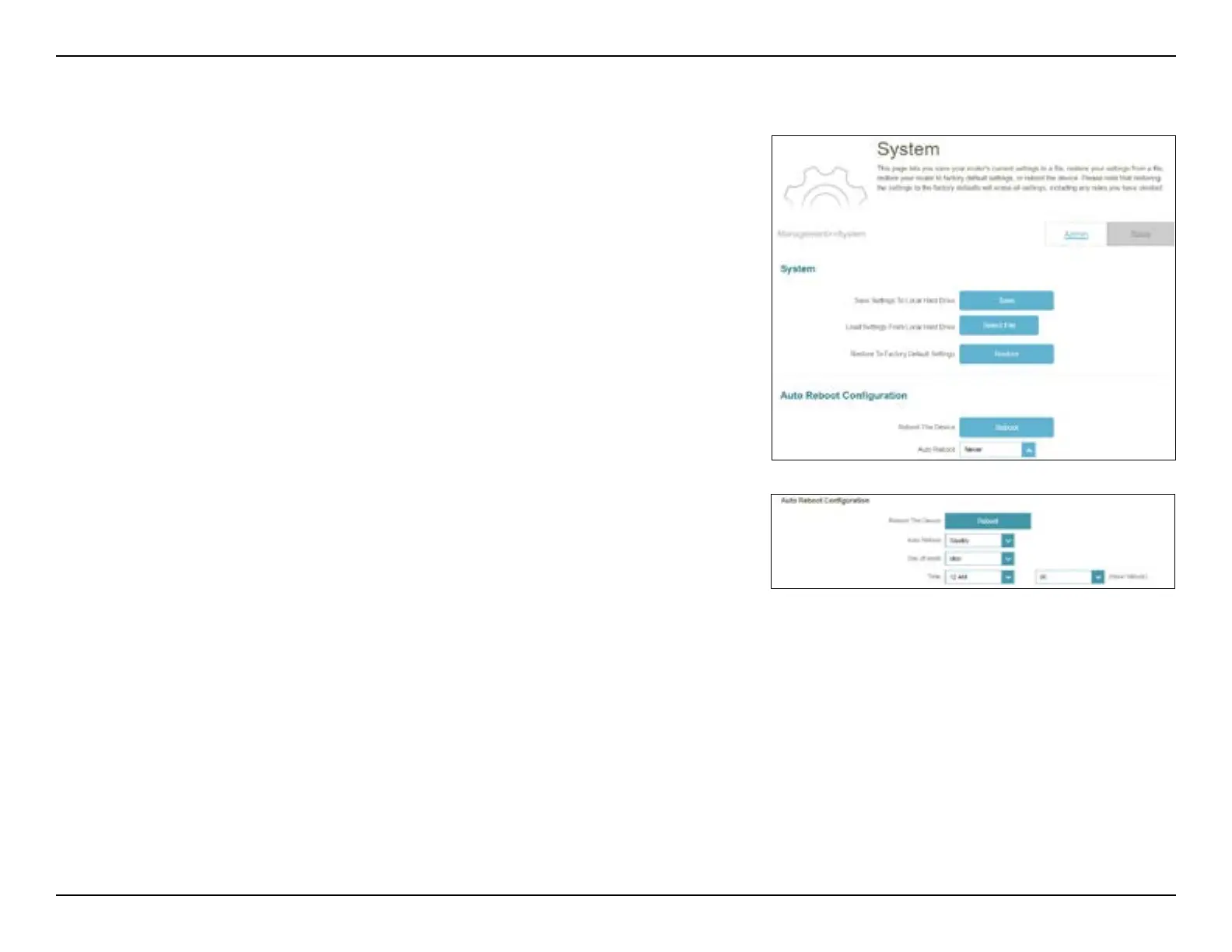 for automatic reboot. Go to Management > System Admin, then click