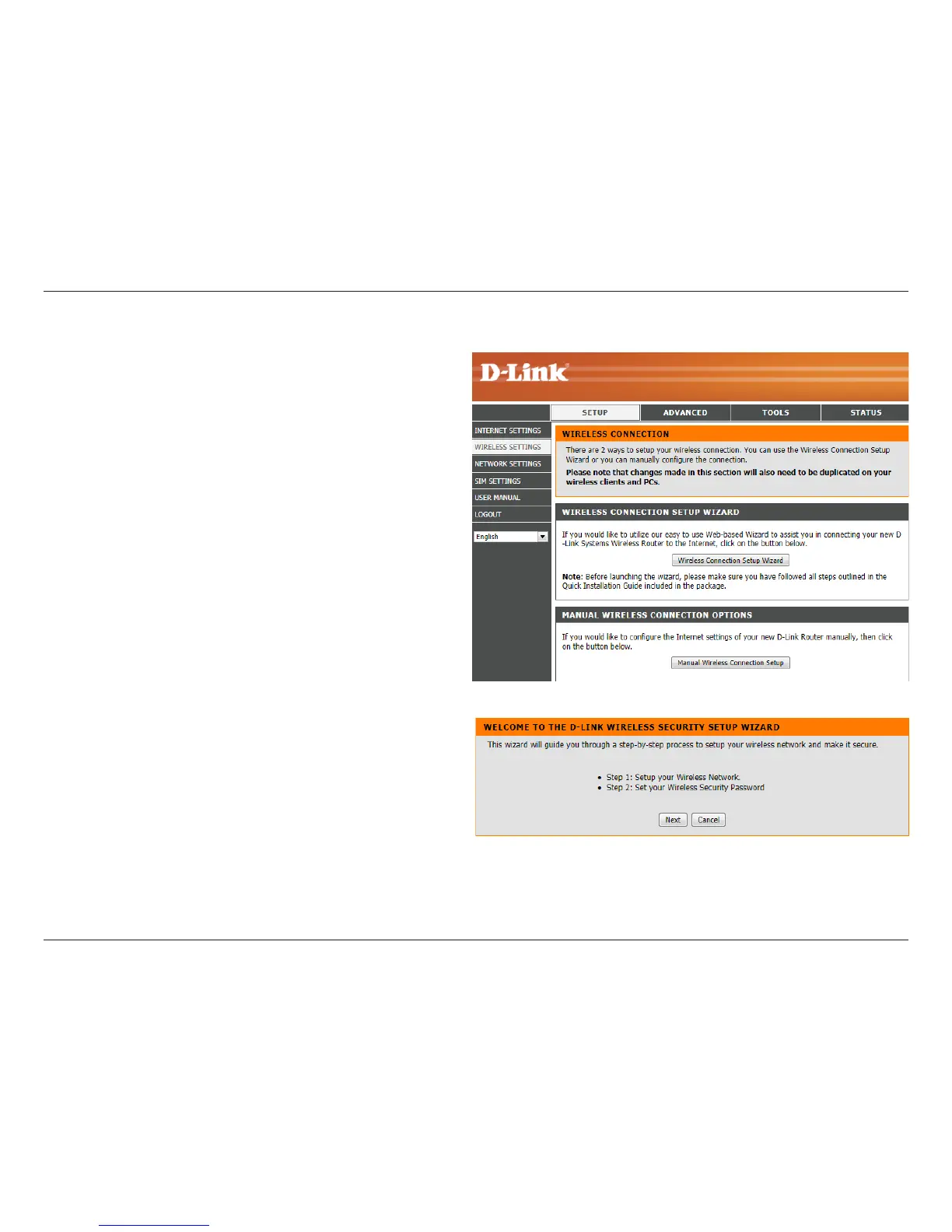 Wireless Security Setup Wizard menu. The Welcome menu lists