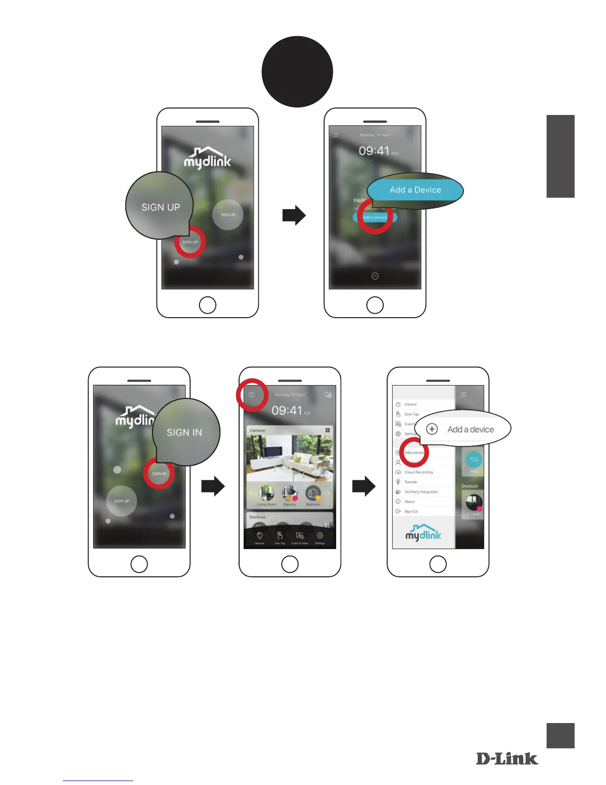 enregistrer votre compte mydlink, puis sur Add a Device (Installer un