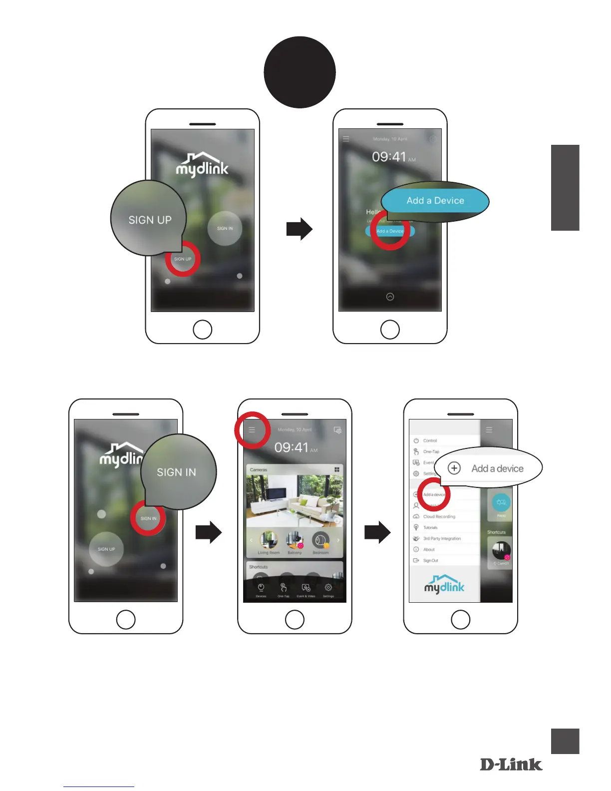 mydlink y pulse Añadir un dispositivo para instalar su cámara.