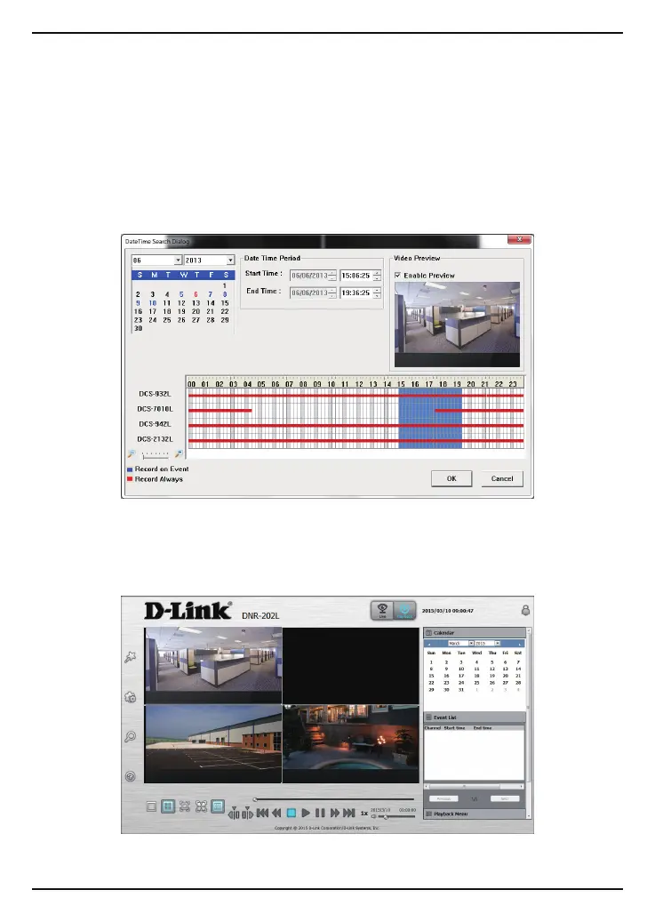 playback, select the date, month and year. Dates highlighted in red indicate video