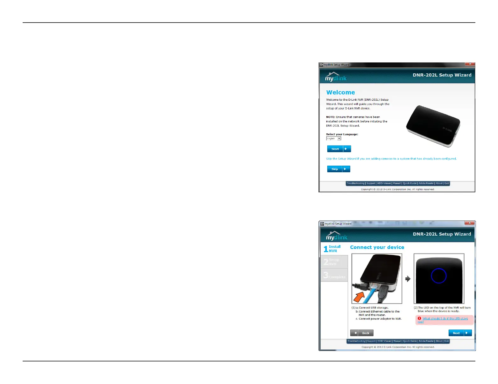 Double-click the DNR-202L Setup Wizard file. When the wizard appears, cick