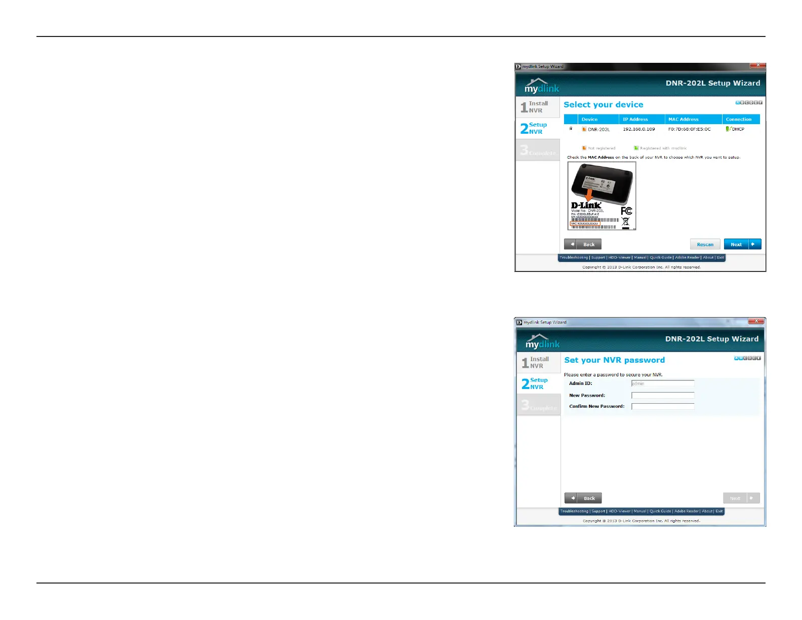 Create and conrm an NVR Password for your device. Click Next to continue.