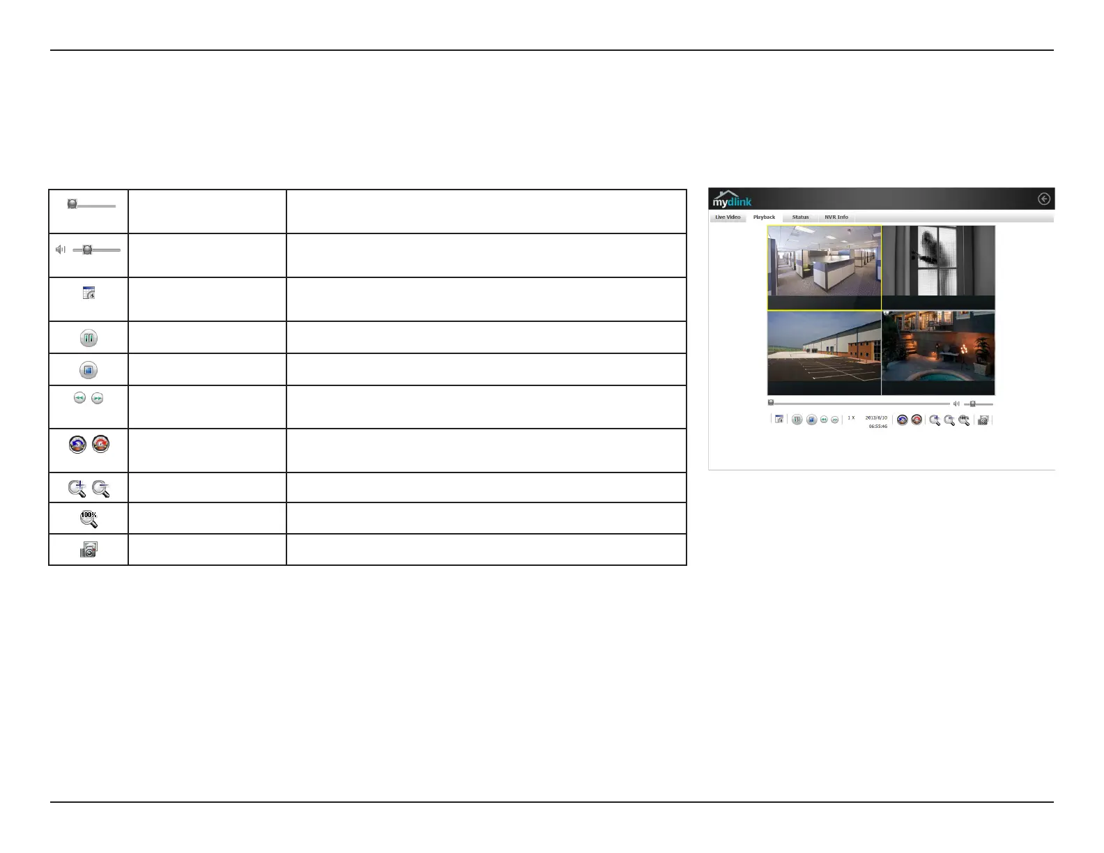 Click the Playback tab to review pre-recorded videos. The Playback controls are described in the table below.