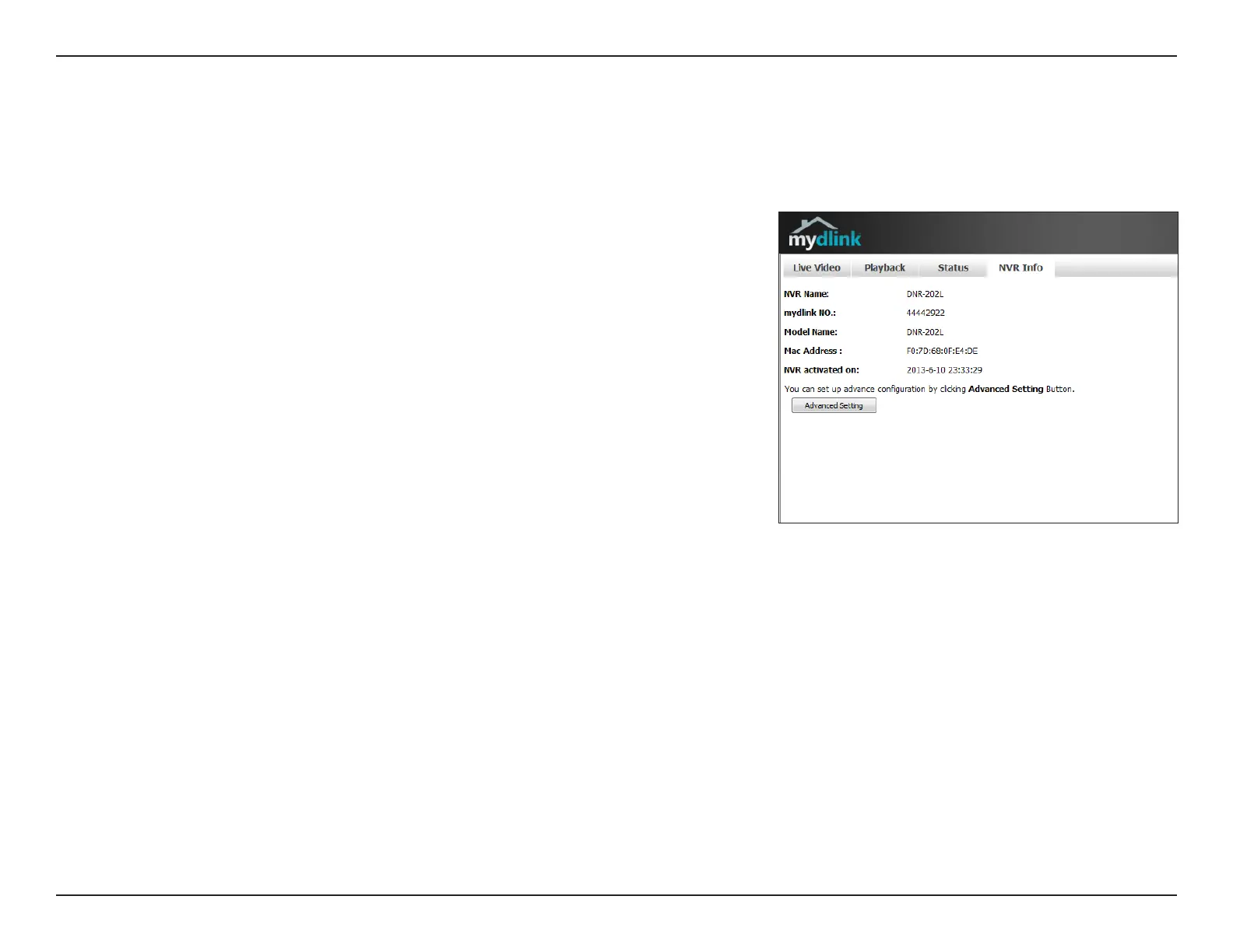 NVR activated on: Displays the time and date that your device was added to mydlink.