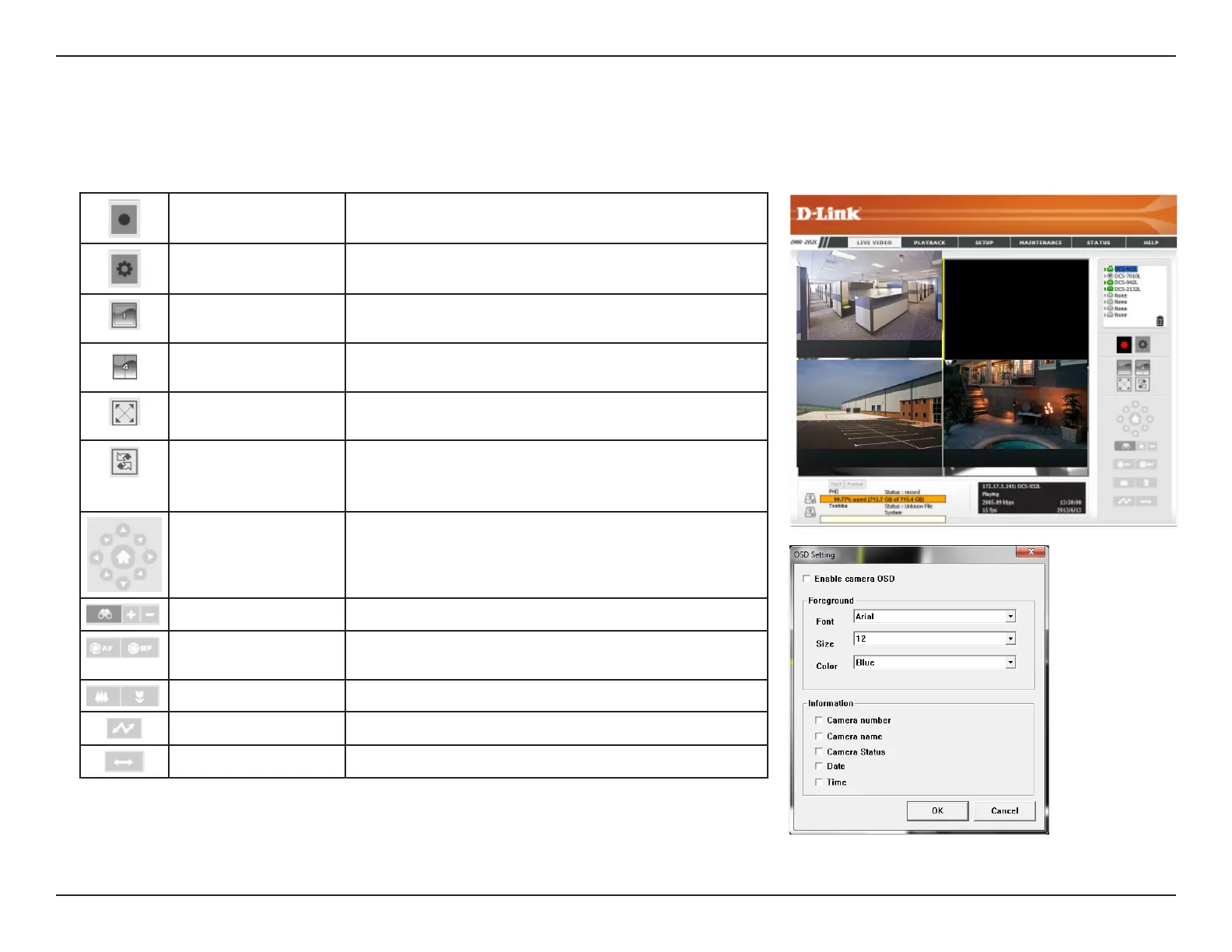 This screen shows the NVR's Live Video feeds. You may select an icon, described in the list below, to operate whichever camera