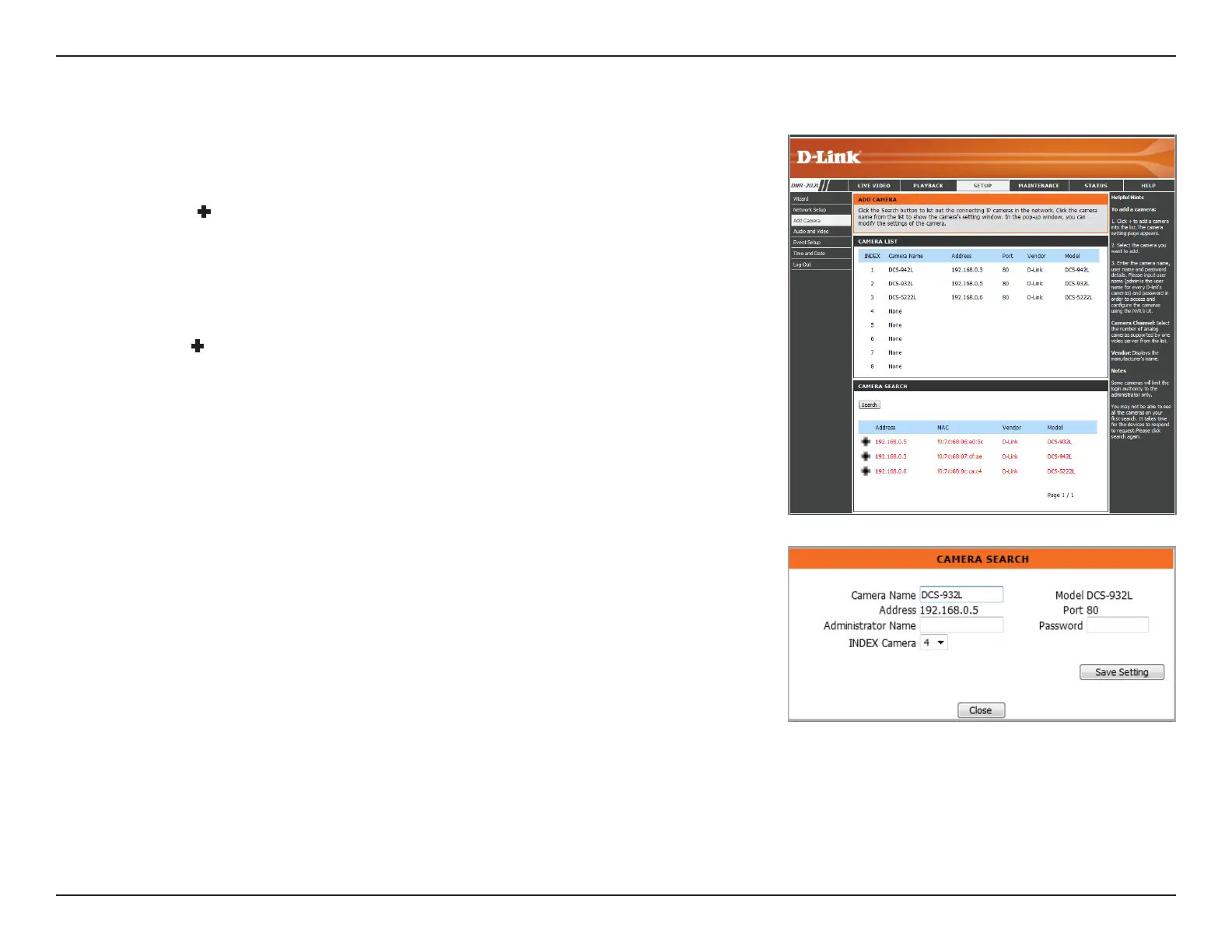 Note: If a cameras is already on the Camera List, it will be listed in red below the Camera Search