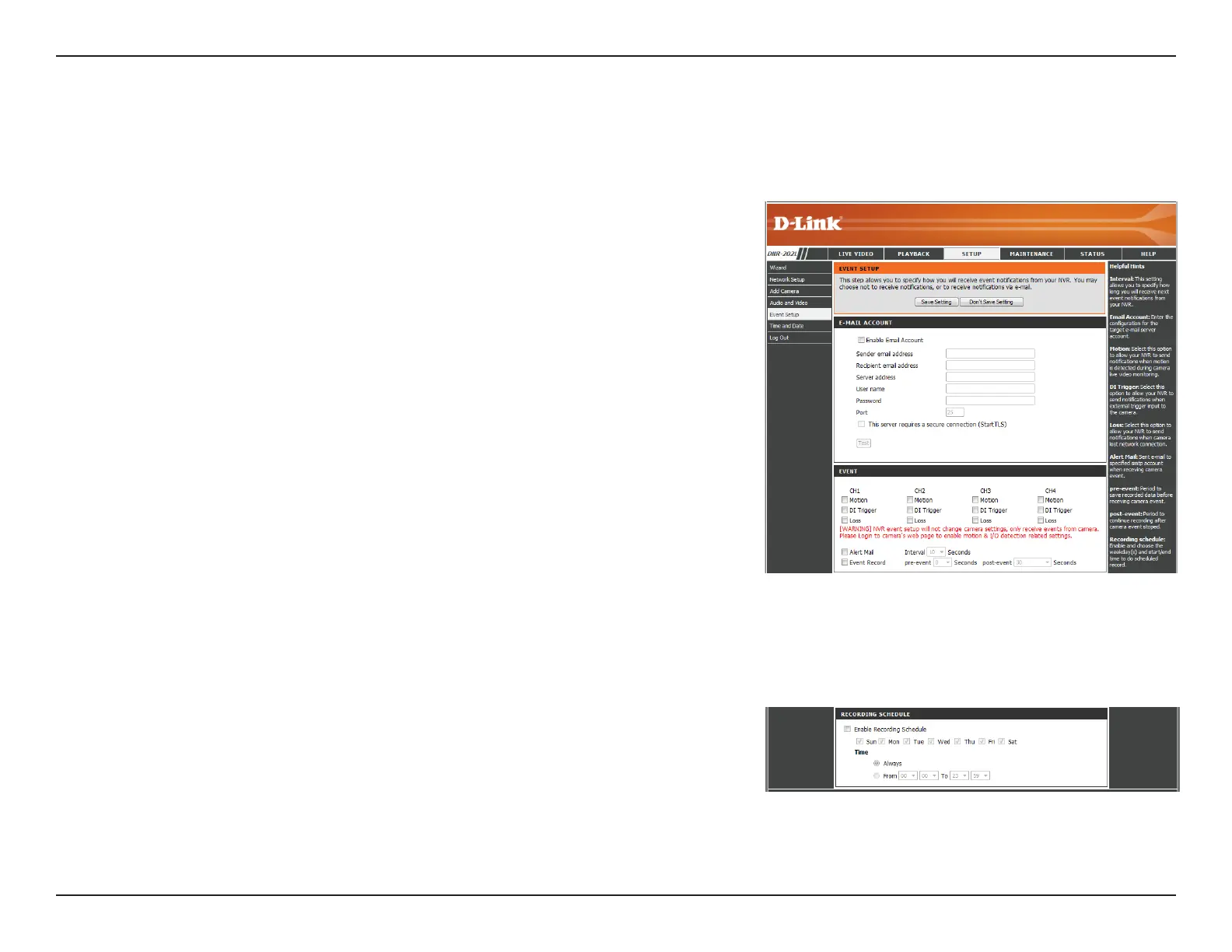 This page is where you specify how you would like to receive event notications from your DNR-202L. An event can be triggered by various