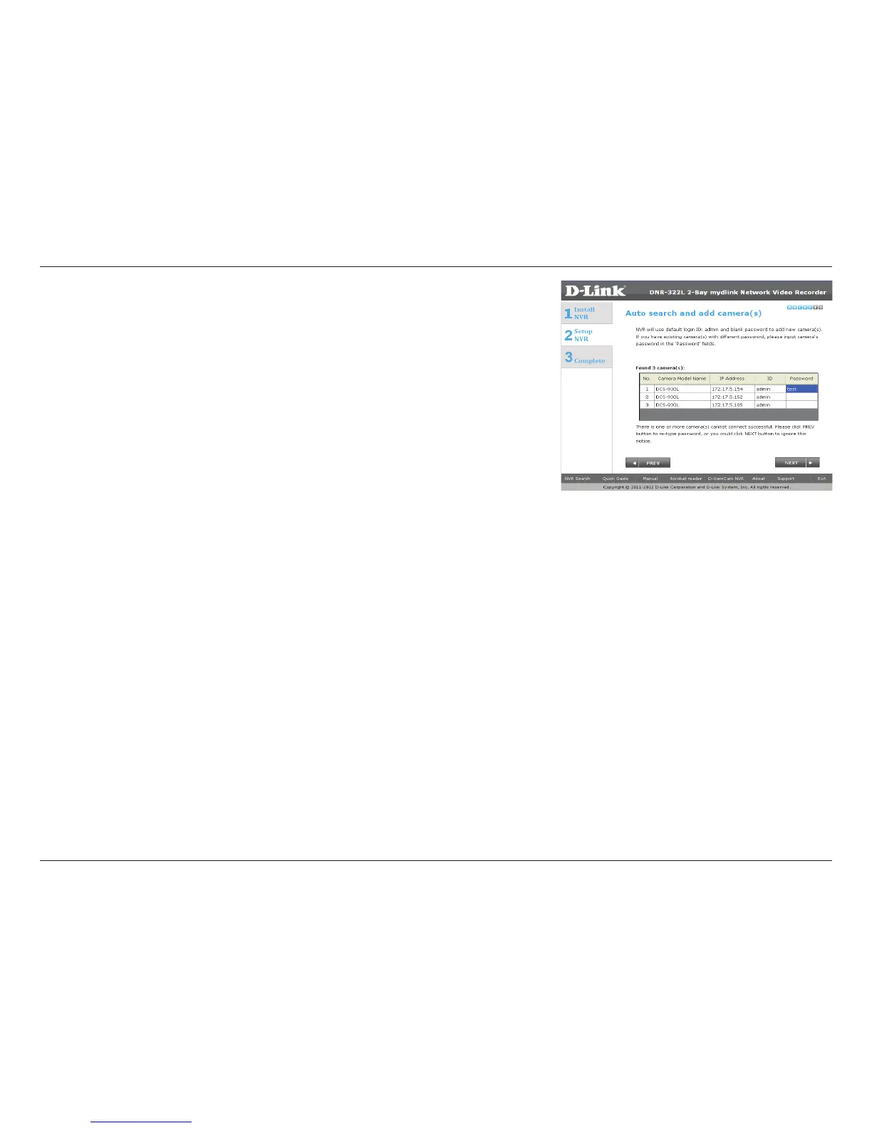 Find the camera in the camera list and type the cameras password in the Password eld.
