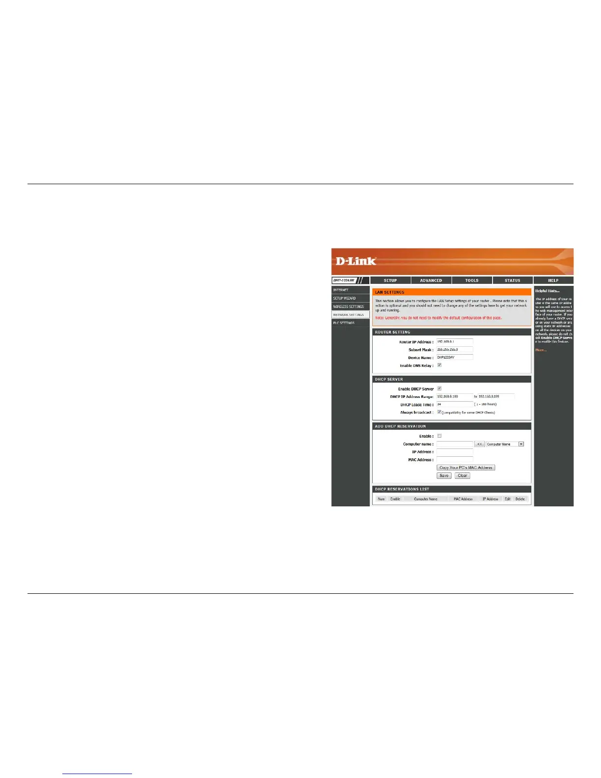 This section will allow you to change the local network settings of the DHP-1220AV and to congure the DHCP settings.