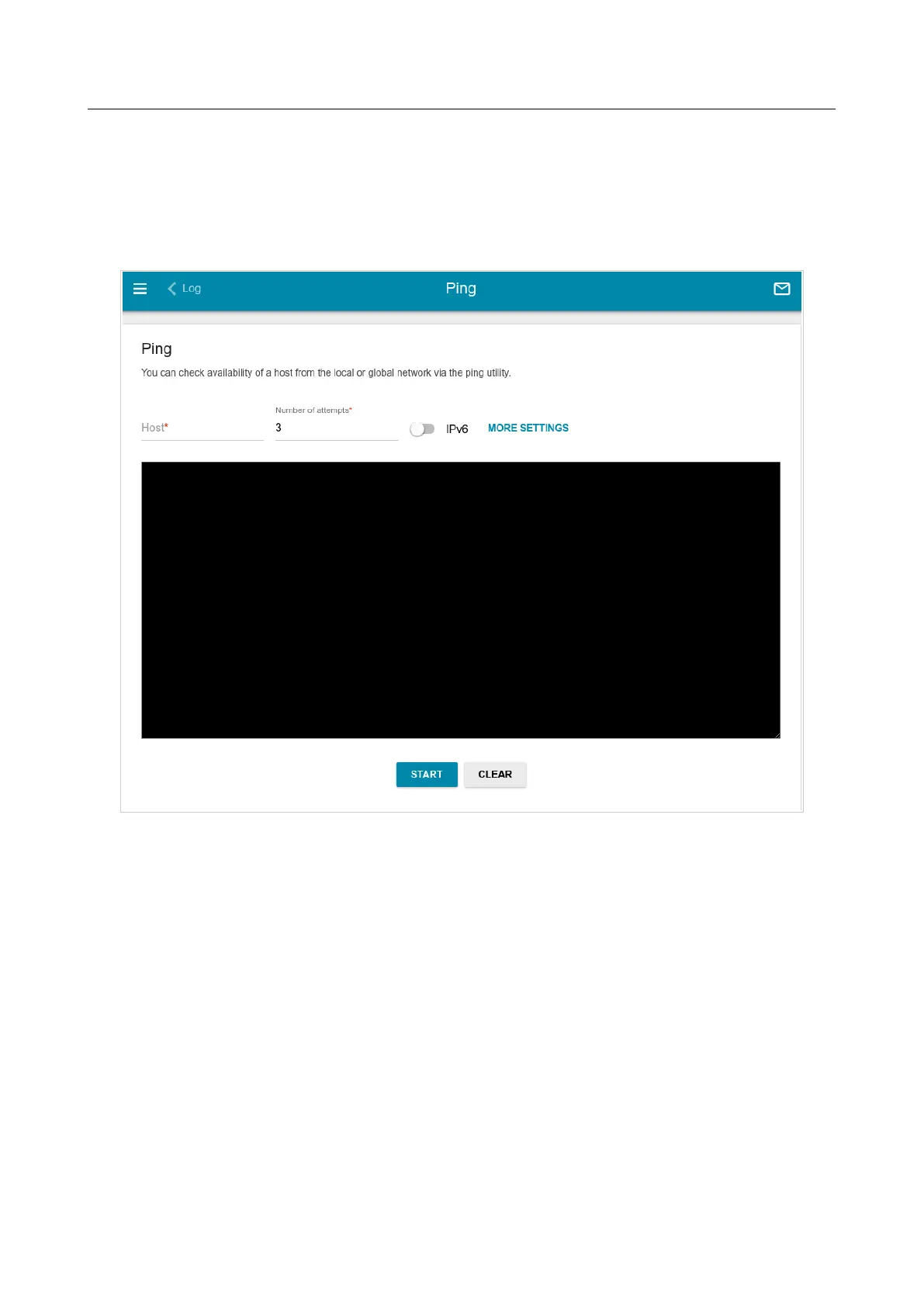 To check availability of a host, enter the IP address or name of this host in the  Host  field and