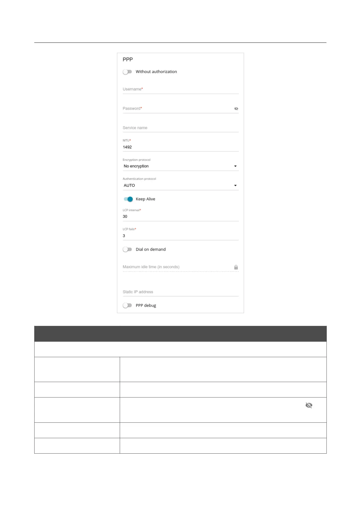 Figure 75. The page for creating a new PPPoE connection. The PPP section.