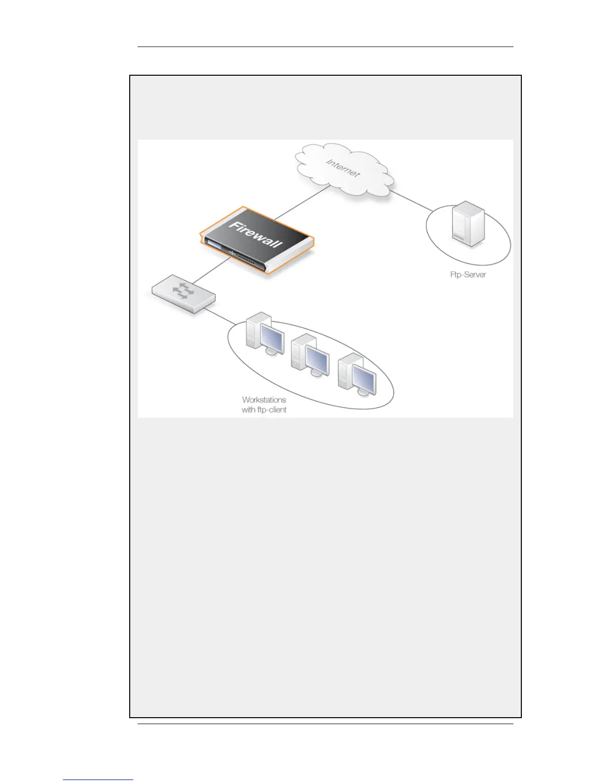 In this scenario shown below the NetDefend Firewall is protecting a workstation that will connect to FTP servers