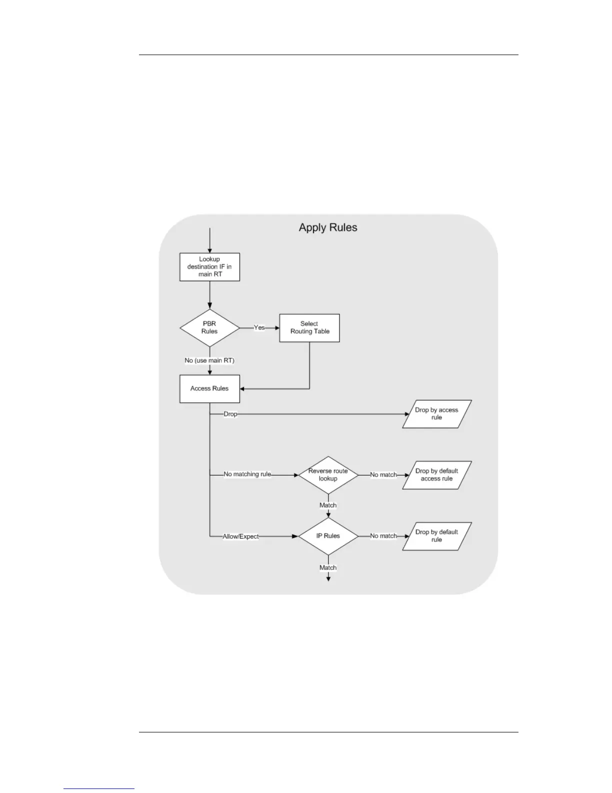 The figure below presents the detailed logic of the Apply Rules function in Figure 1.2, “Packet
