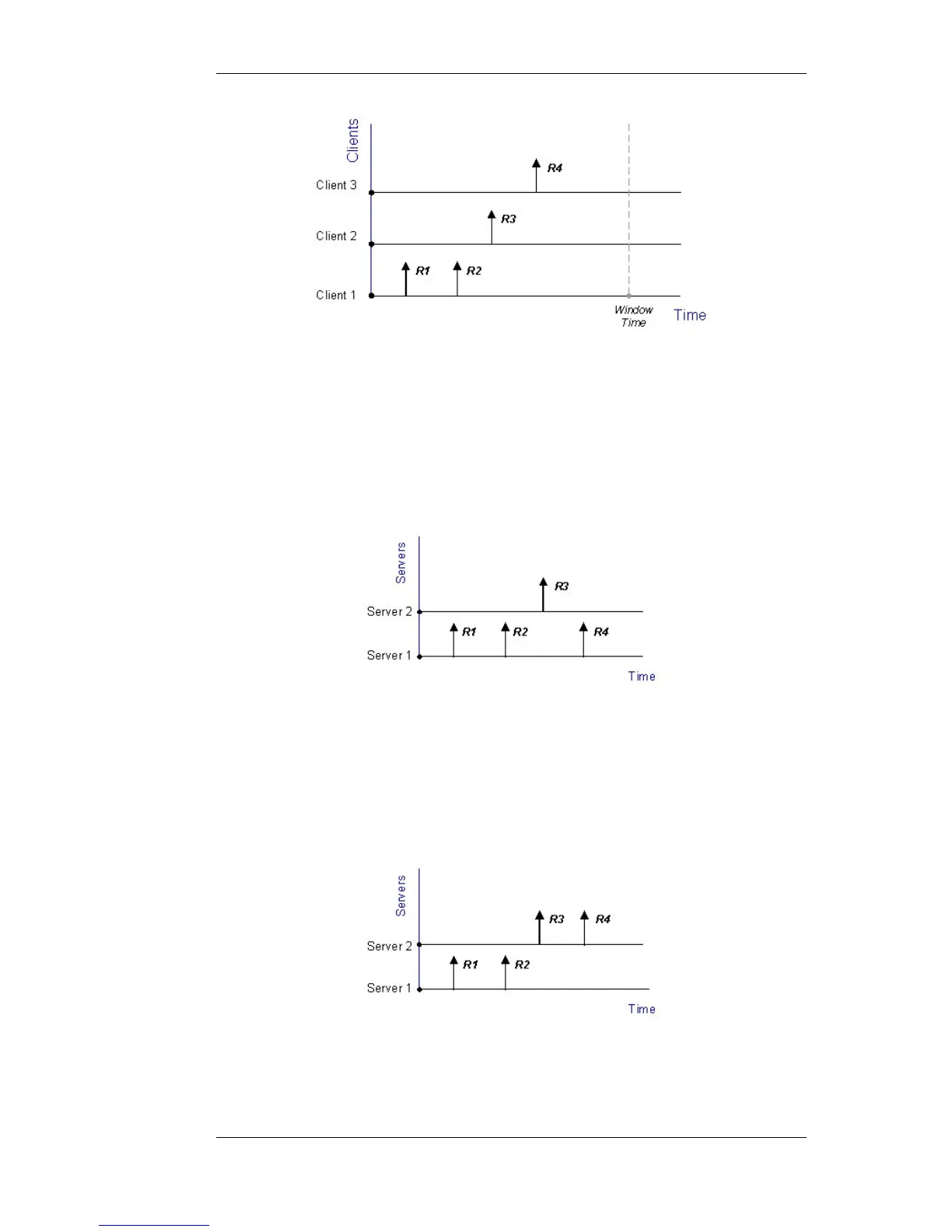 both assigned to one sever, say Server 1, according to stickiness. The next request R3 from Client 2