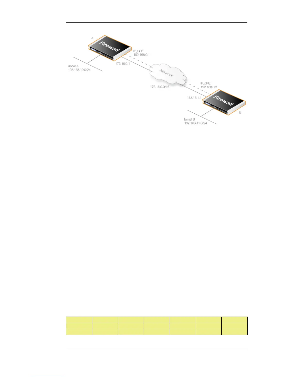 The diagram above shows a typical GRE scenario, where two NetDefend Firewalls A and B must
