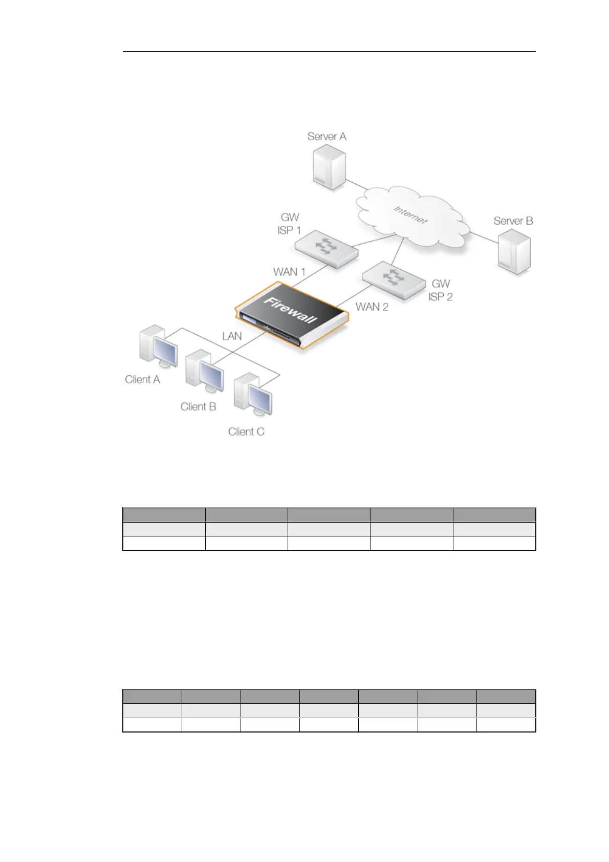to the firewall interfaces WAN1 and WAN2. RLB will be used to balance the connections