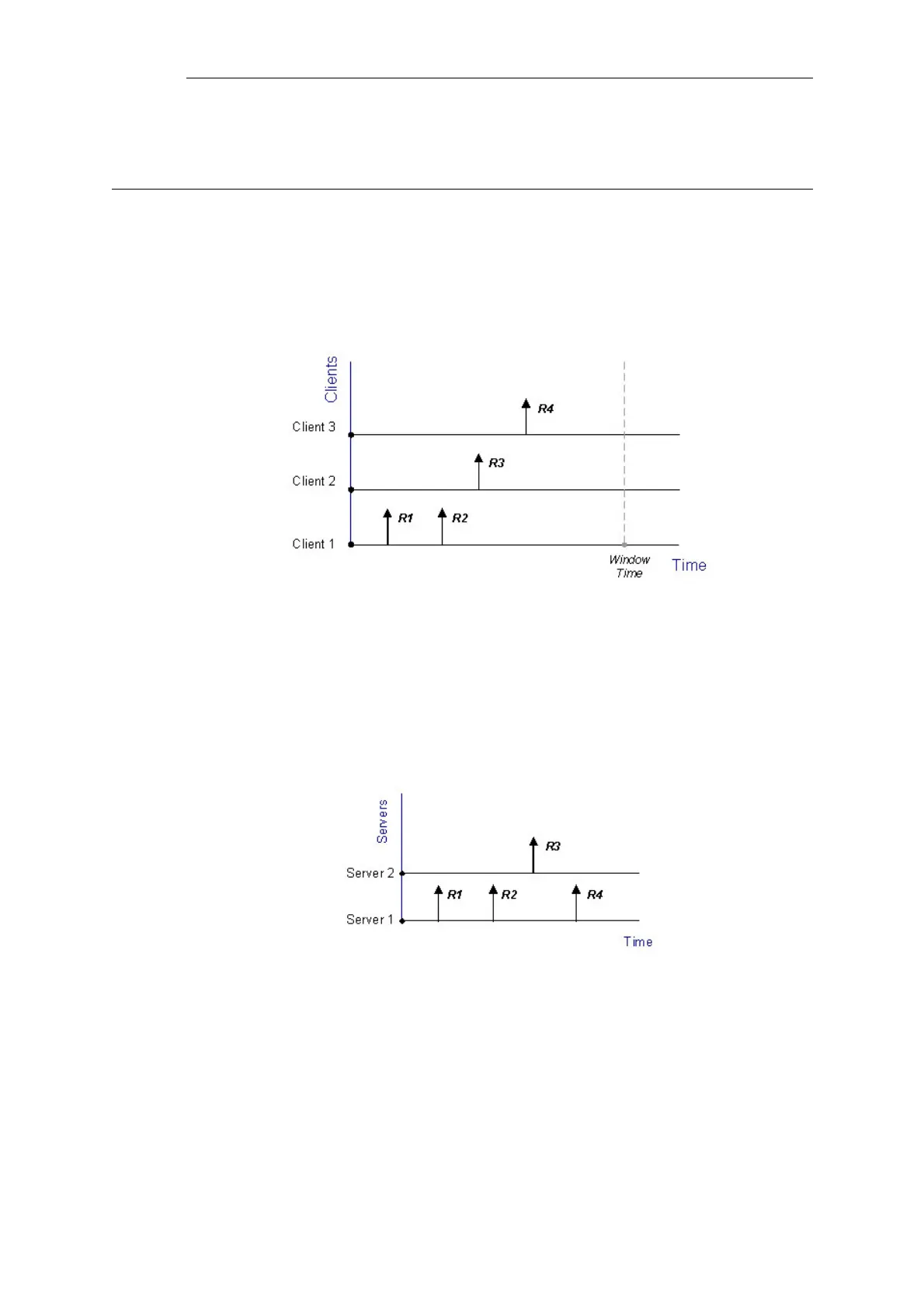 If the connection-rate algorithm is applied instead, R1 and R2 will be sent to the same server