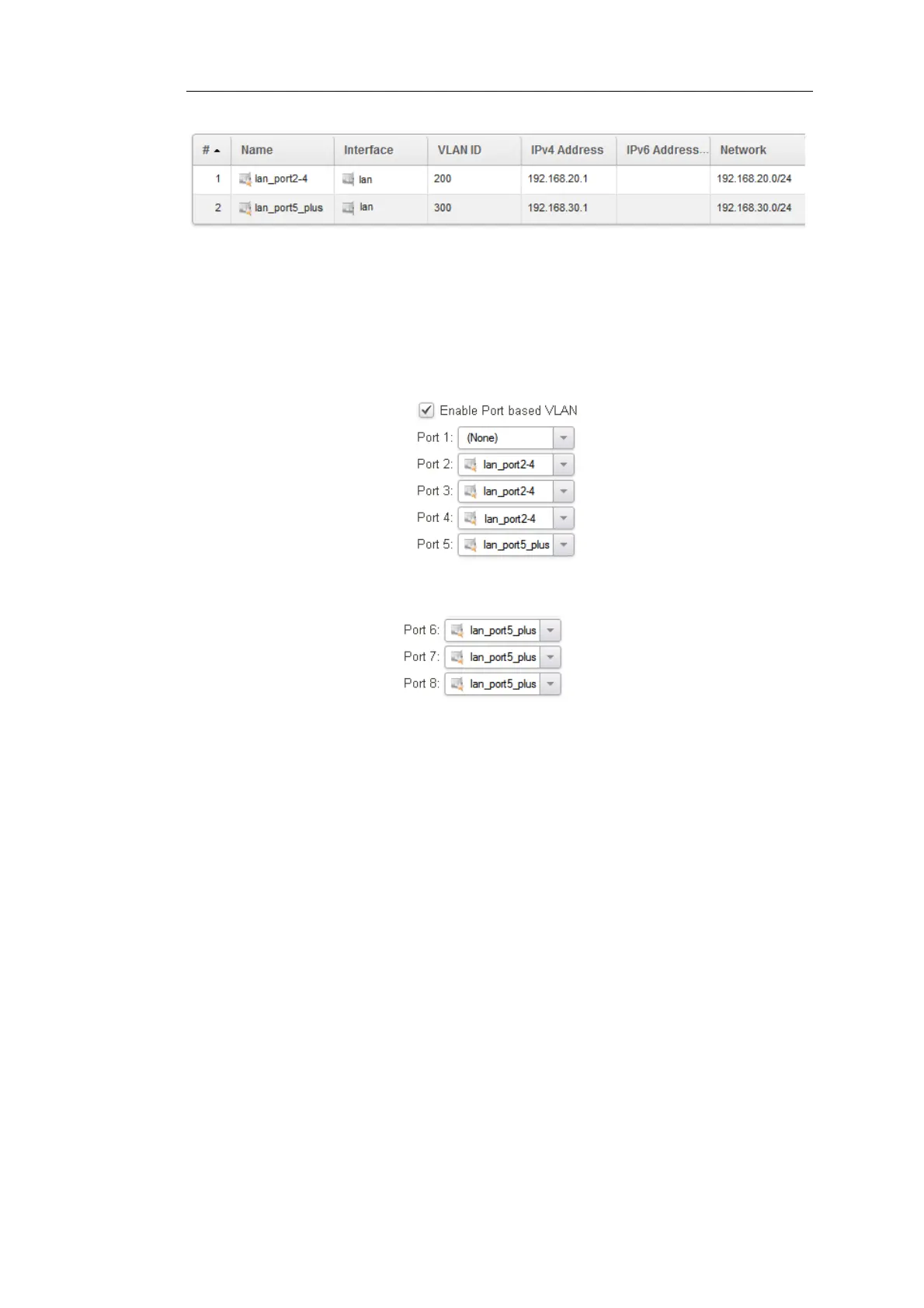 When the port based VLAN feature is used, all of the LAN interfaces act as access ports and