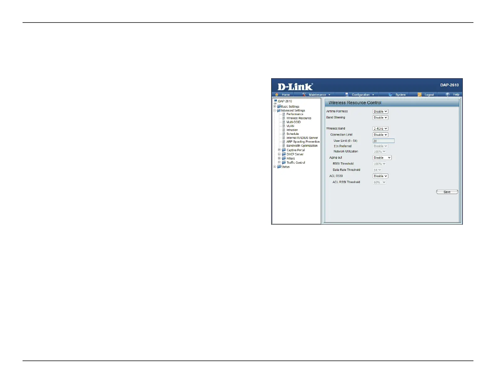 the percentage that has been specied, the DAP-2610 will not allow clients to associate with the AP.