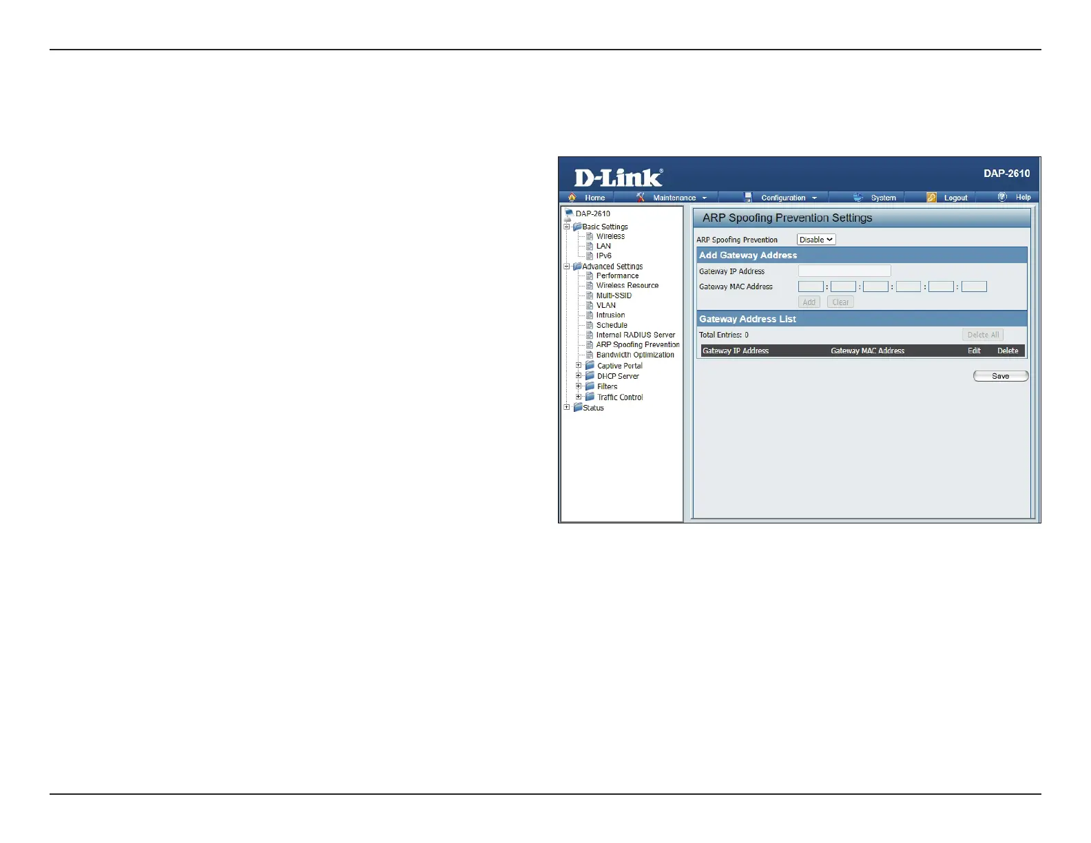 The ARP Spoong Prevention feature allows users to add IP/MAC address mapping to prevent ARP spoong attacks.