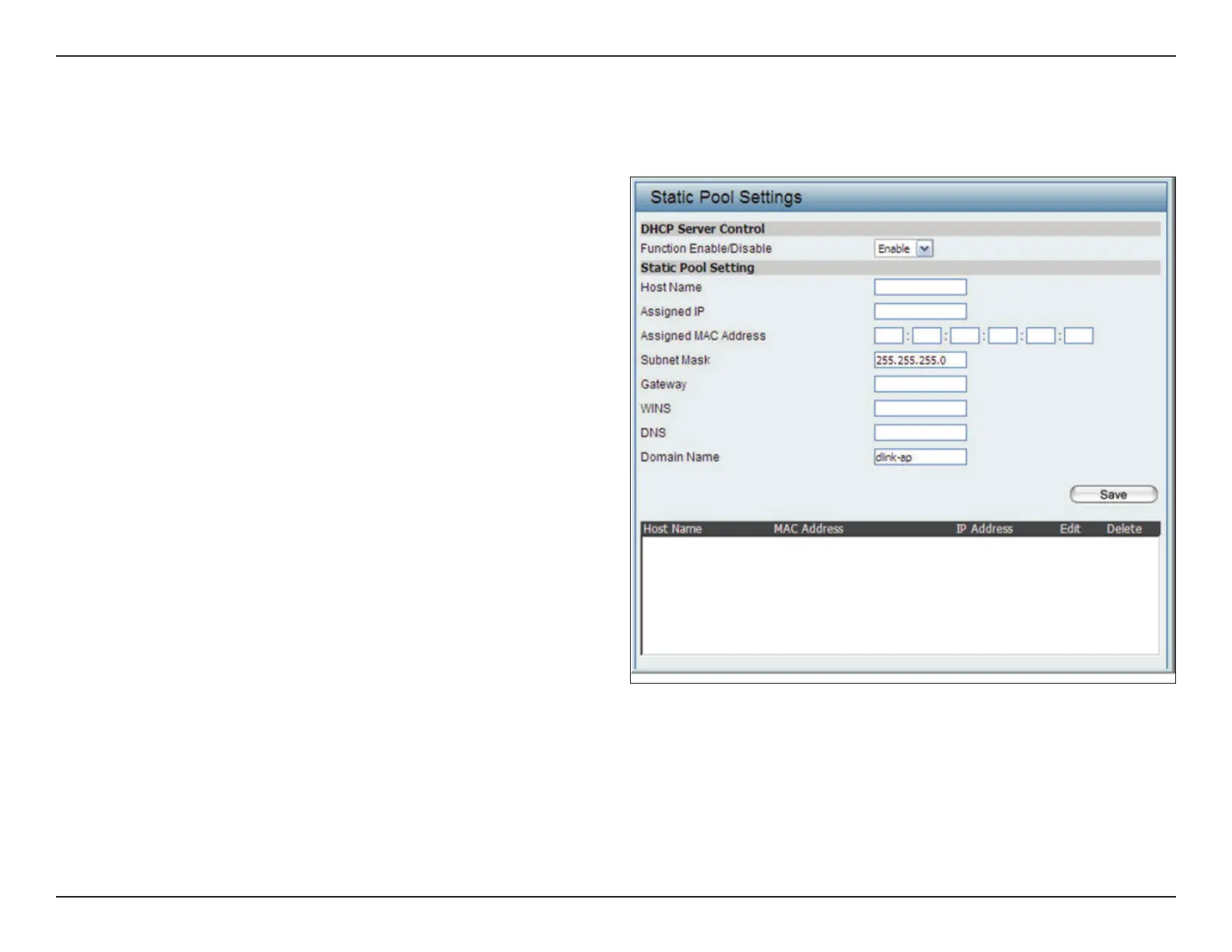 The DHCP address pool denes the range of IP addresses that can be assigned to stations on the network. A static pool allows specic wireless
