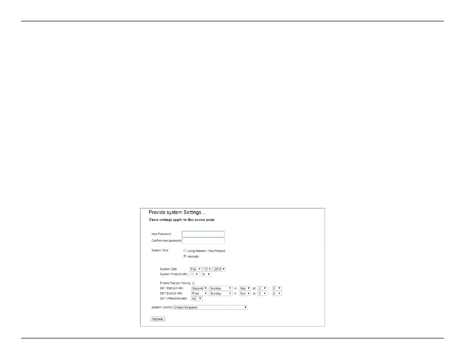 In the System Time function, select Using Network Time Protocol (NTP) or Manually to dene the system time. If required, click the Daylight Sav-