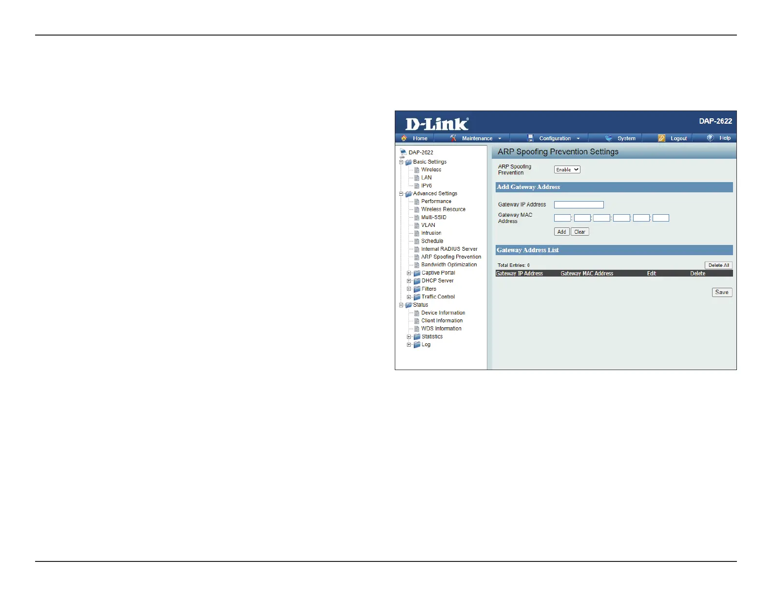 The ARP Spoong Prevention feature allows users to add IP/MAC address mapping to prevent ARP spoong attacks.
