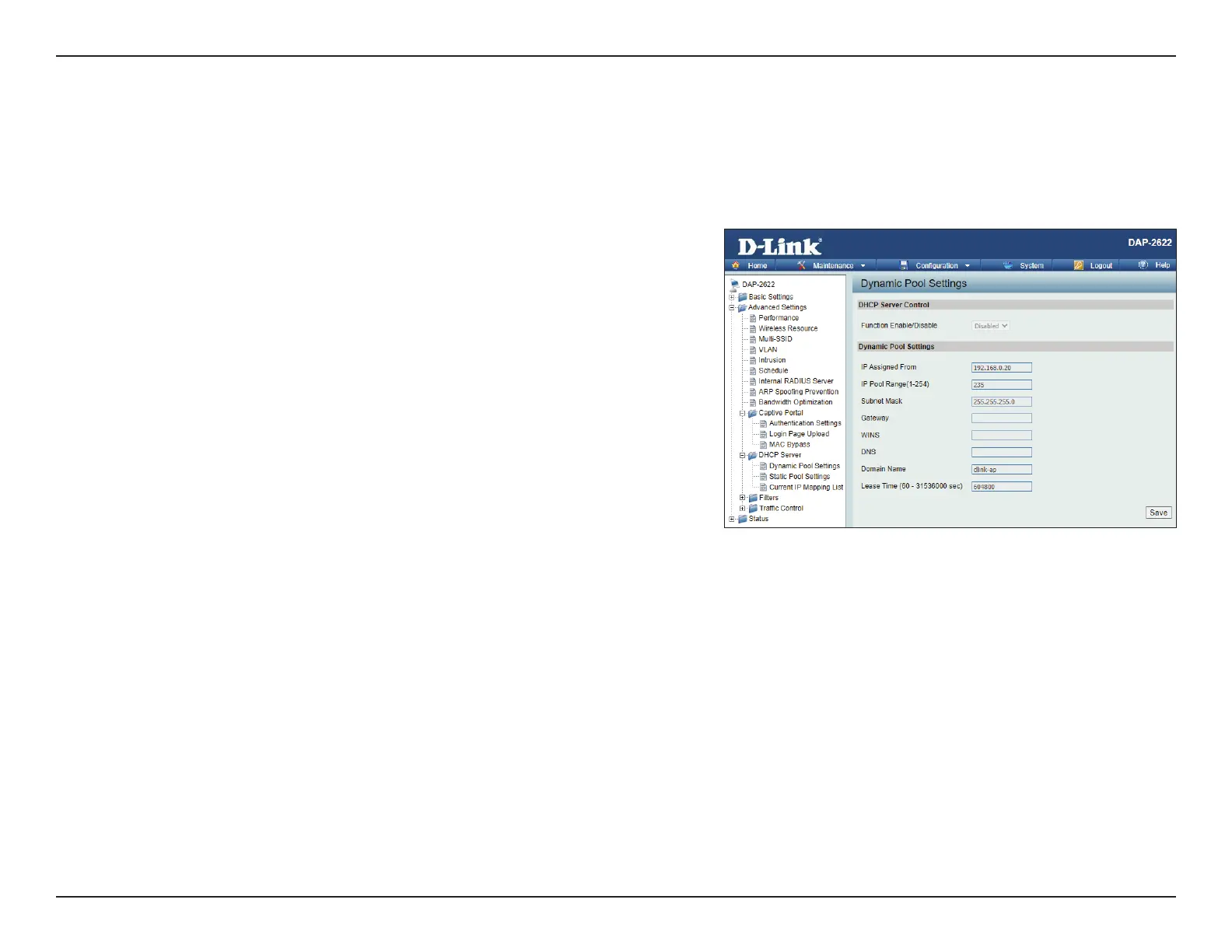 stations to receive an available IP with lease time control. If required, the DAP-2622 is capable of acting as a DHCP server.