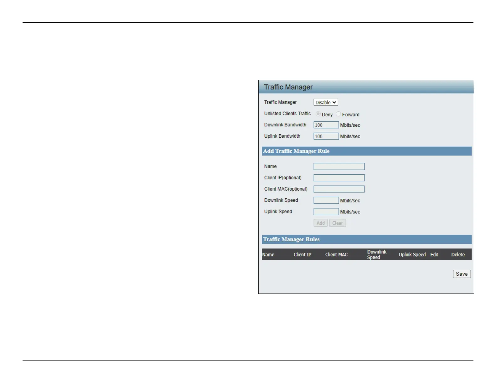 downlink/uplink speed for new trac manager rules. Click the Save button to let your changes take eect.