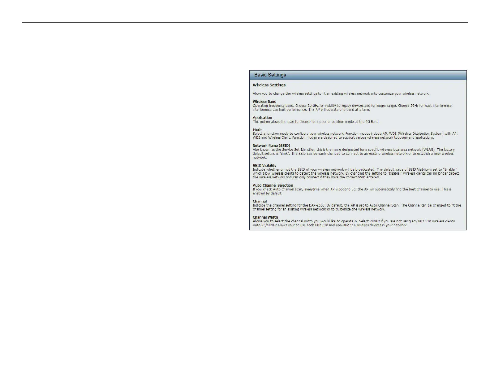 The help page is useful to view a brief description of a function available on the access point in case the manual is not present.