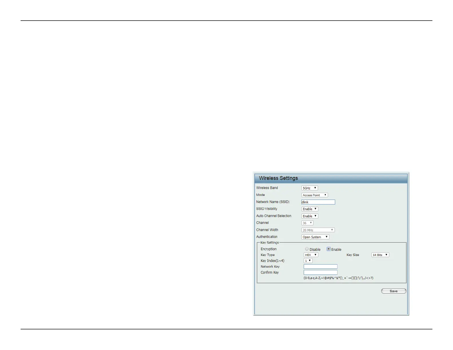 Network Key Input the characters which will dene the