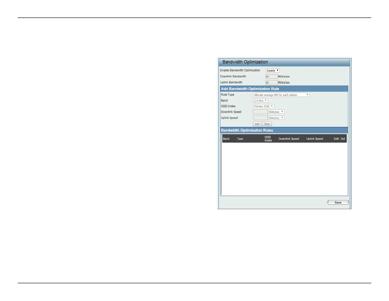 dening the Bandwidth Optimization rule, click Add. To discard the settings, click Clear. Click Save for the changes to take eect.