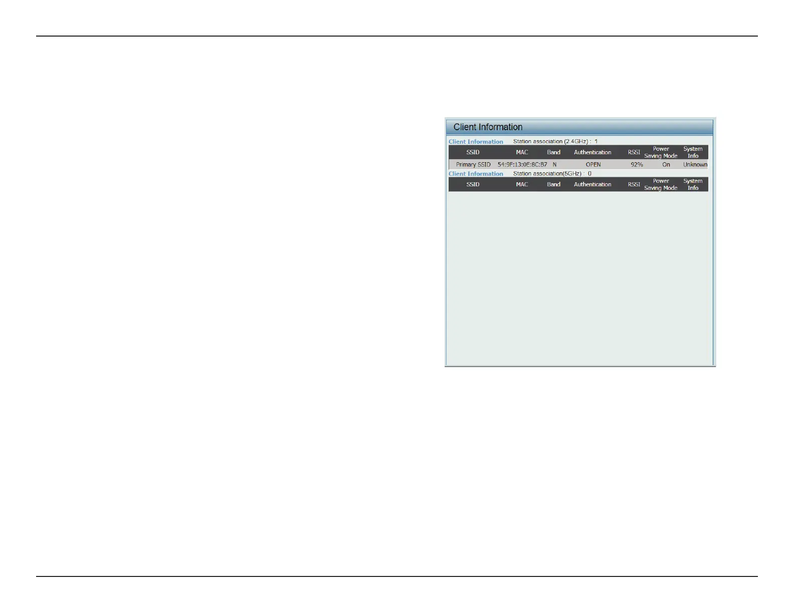 RSSI Displays the associated clients RSSI for the