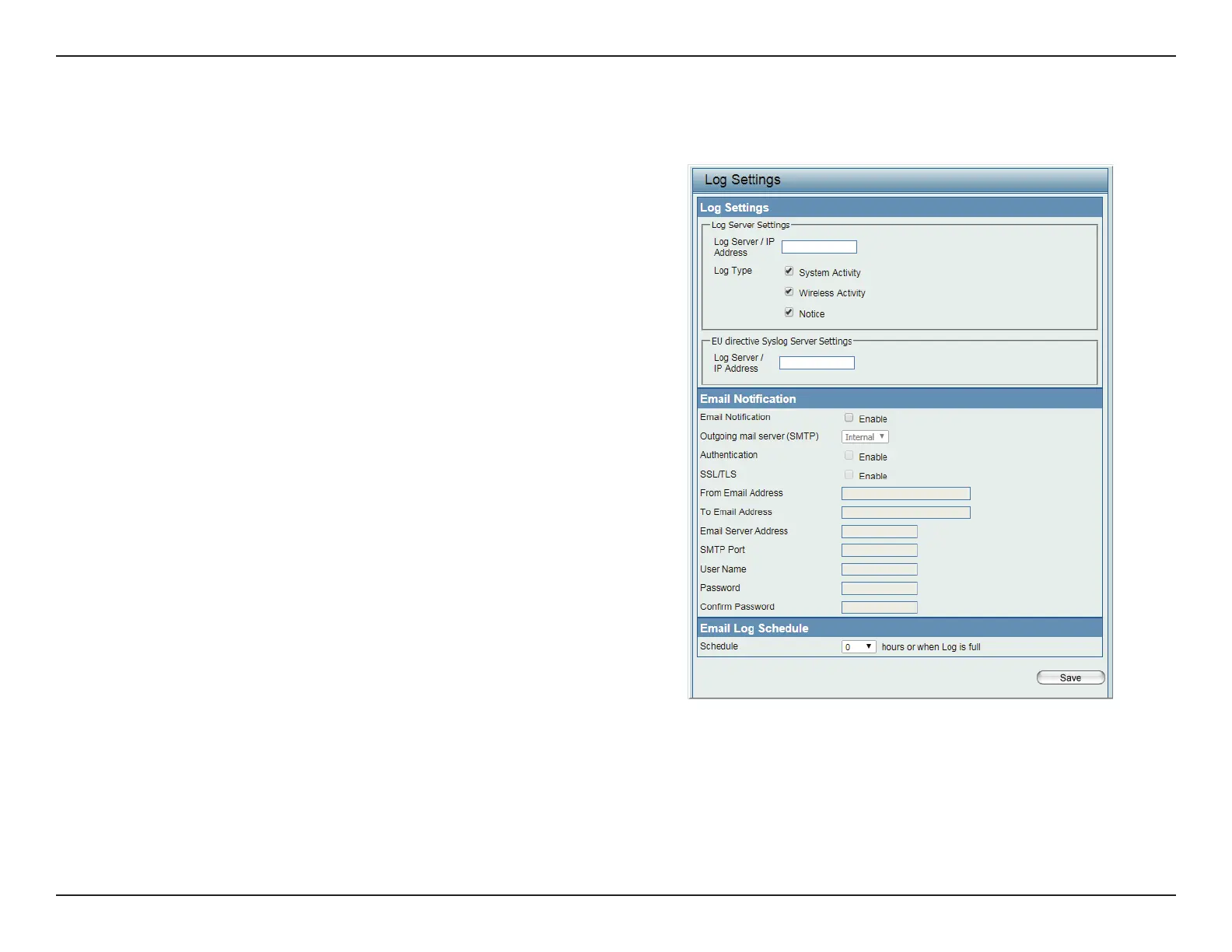 Enter the log server’s IP address to send the log to that server. Check or uncheck System Activity, Wireless Activity, or Notice to specify what kind