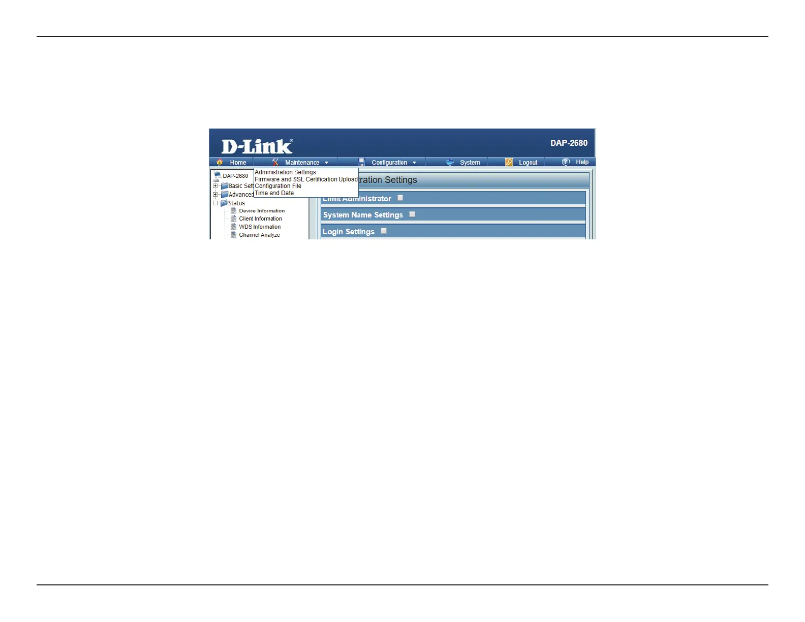 client information, WDS information and more. The following pages will explain settings found in the maintenance section in more detail.