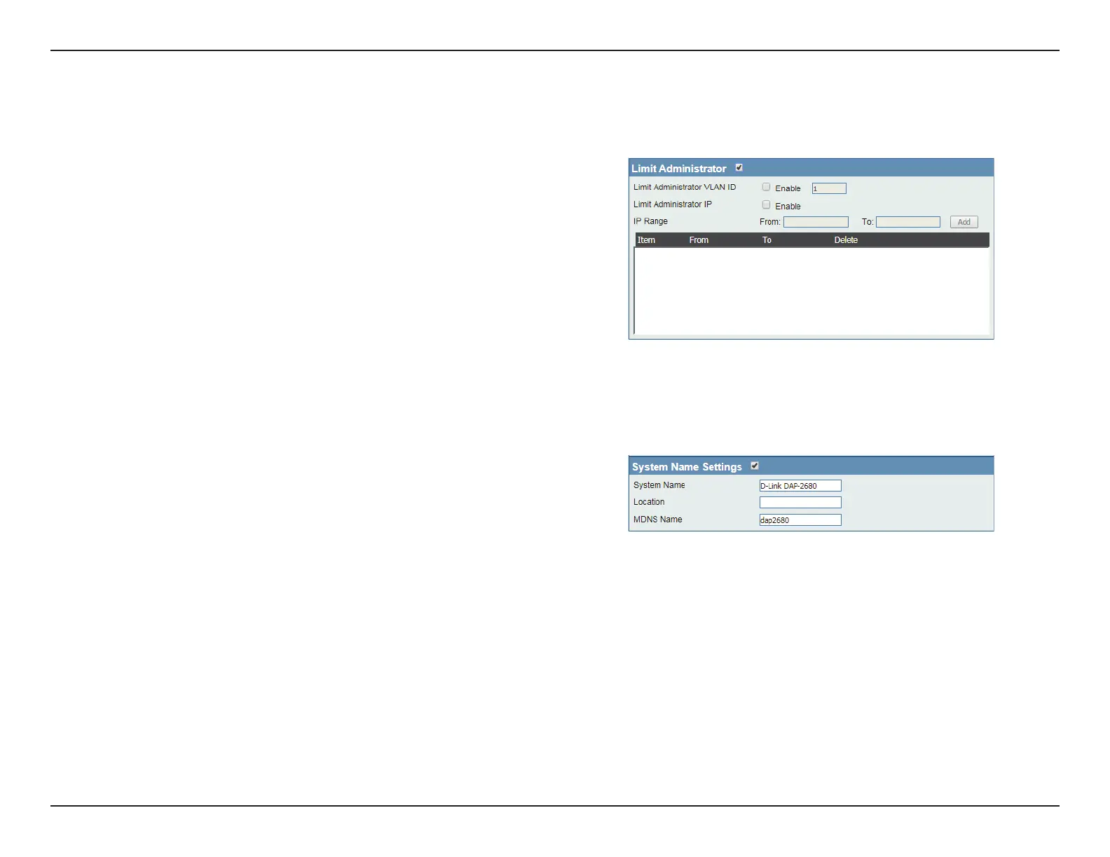 pages. Each of the eight main categories display various hidden administrator parameters and settings.