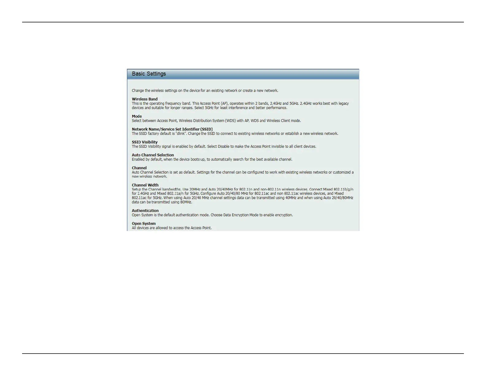 The Help page is useful to view a brief description of the functions available on the access point in case the manual is not present.