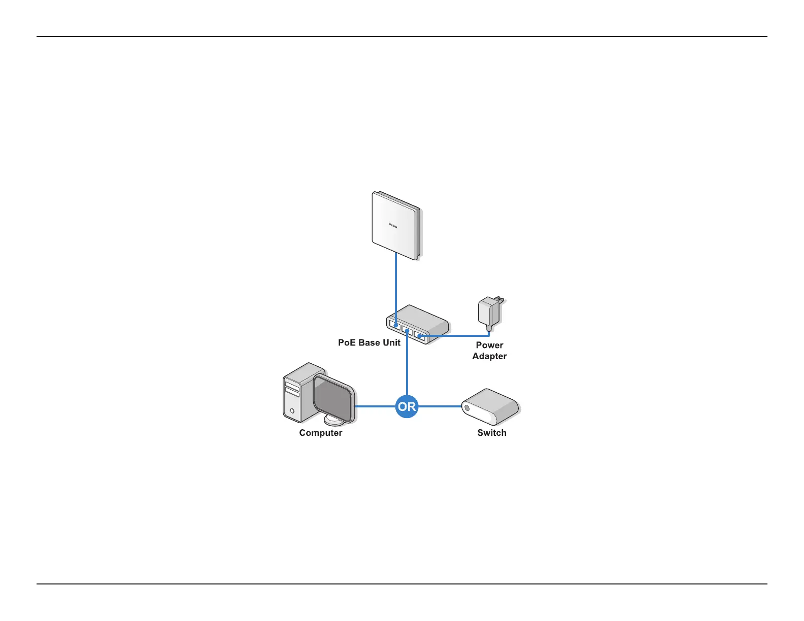 2. Connect one end of an Ethernet cable into the P+Data Out port on the PoE base unit and the other end into the LAN1 (PoE) port on the